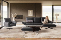 Sie haben Ihre neue Wohnung mit viel Liebe zum Detail eingerichtet und jetzt fehlt nur noch ein Möbelstück, das kompromisslosen Luxus mit vollendeter Entspannung vereint. Entdecken Sie Buddy - die Design-Ikone aus dem Hause KOINOR. Hier trifft meisterhafte Handwerkskunst auf urbane Ästhetik. Buddy fasziniert durch sein spannendes Spiel der Gegensätze: Klare, kubische Formen verschmelzen mit einladend voluminösen Polstern zu einem optischen Highlight. Gehüllt in ein atemberaubendes, schwarzes Echtleder, strahlt dieses Ecksofa eine zeitlose Eleganz aus, die sich nahtlos in Ihr Interieur einfügt. Da auch der Rücken mit feinstem Leder bezogen ist, genießen Sie absolute architektonische Freiheit bei der Raumgestaltung. Aber das KOINOR Sofa sieht nicht nur fantastisch aus, es fühlt sich auch, dank einer weichen Polsterung aus einem Polyschaum, so an. Der Rücken lässt sich manuell nach hinten verstellen, wodurch sich die Sitztiefe auf großzügige ca. 61 cm erweitert. Das ist kein einfaches Sitzen mehr - das ist Entspannung auf höchstem Niveau. Machen Sie keine Kompromisse, wenn es um Ihren Komfort geht. Kontaktieren Sie noch heute unsere Experten per Telefon, Mail oder Live-Chat für Ihre persönliche Wunschkonfiguration. Erleben Sie Design und Qualität Made in Germany - Buddy von KOINOR.