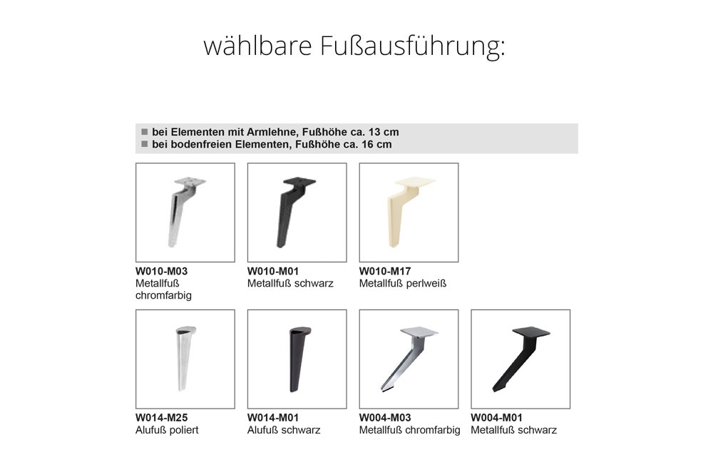 - Fußvariante: W010-M17 - Metallfuß perlweiß, ca. 13 cm