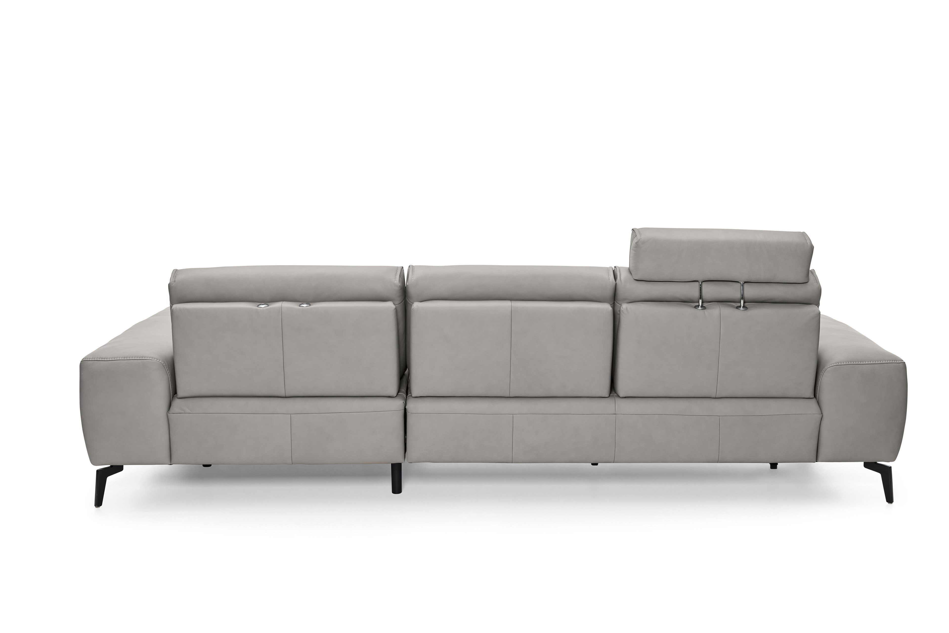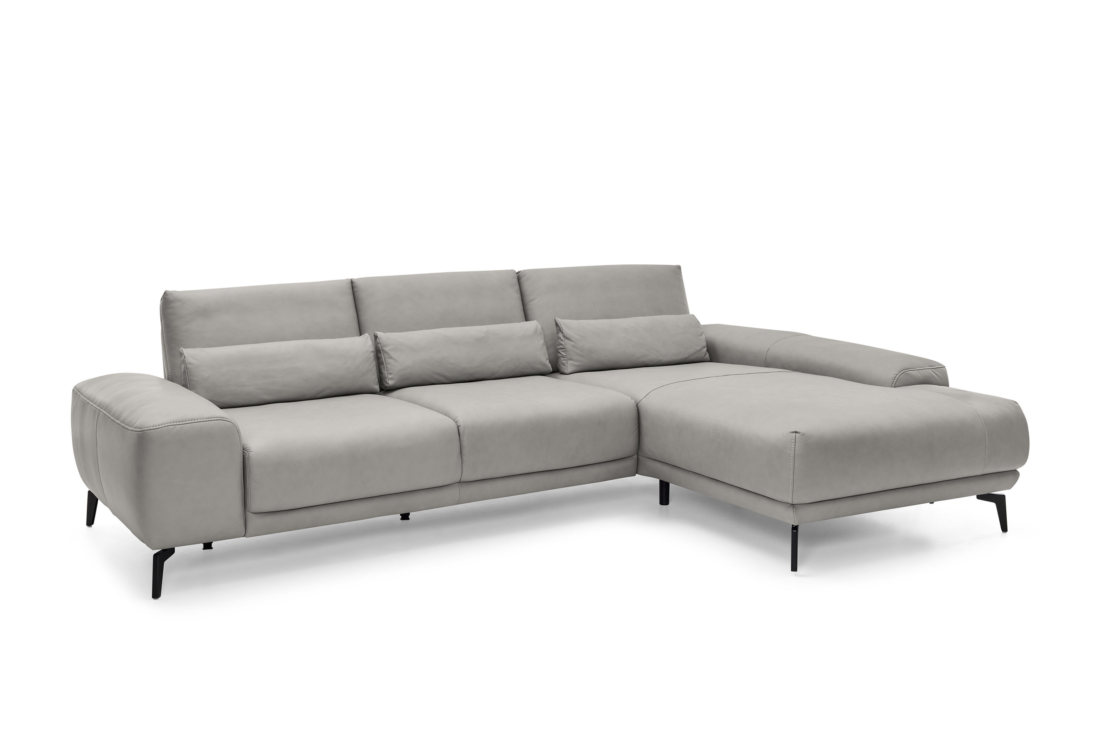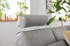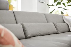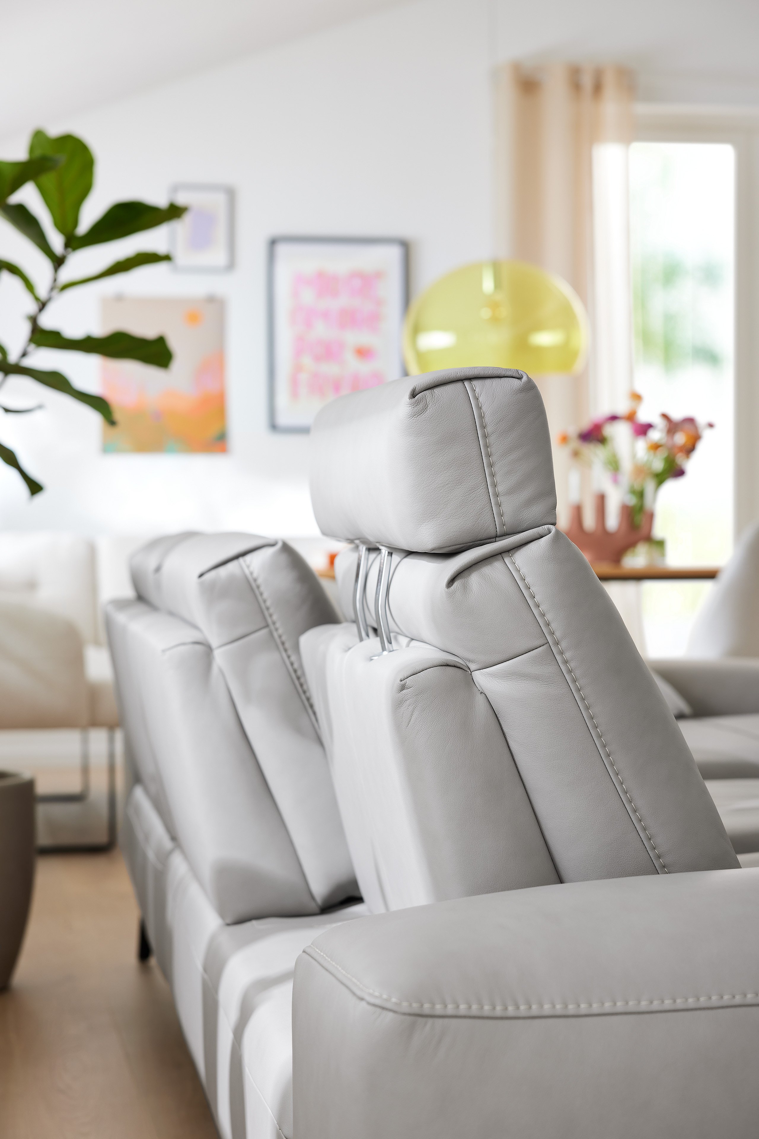 Diese Musterring Polstergarnitur ist nicht nur ein Platz zum Sitzen, sondern der perfekte Ort zum Leben - Modell MR 290. Mit einer großzügigen Zusammenstellung aus einem 2,5-Sitzer sowie einem Canape bietet diese Eckcouch ausreichend Fläche für erholsame Momente nach einem ereignisreichen Tag oder, um ein gemütliches Beisammensein mit den Freunden zu erleben und den Abend bei leckeren Snacks sowie kühlen Cocktails ausklingen zu lassen. Die stylishe Couchgarnitur ist mit einem hochwertigen Kaltschaum auf dauerelastischen Wellenfedern gepolstert, welche in Kombination mit einer angenehmen Sitzhöhe von ca. 46 cm, oder auf Wunsch auch mit ca. 48 cm, für ein herrliches Sitzempfinden beim entspannten Lesen oder Fernsehen sorgt. Über die Zusatzoptionen lässt sich MR 290 mit einer Sitztiefenverstellung ausstatten, welche durch das Anheben und Vorziehen der Rückenlehne die Sitztiefe von ca. 79 cm auf 61 cm verkürzt. Außerdem können Sie zwischen drei verschiedenen Metallfußvarianten auswählen. Zudem lässt sich das Möbelstück optimal mit Kissen, Kopfstützen und einem passenden Hocker ergänzen - so entsteht ein harmonisches Gesamtbild und es wird Ihnen noch mehr Komfort geschenkt. Bestellen Sie noch heute die ca. 307 x 199 cm große Polsterecke, welche sich mit ihrem grauen Ledergewand problemlos in jede Wohnwelt einfügt, und genießen Sie ganz bald Ihre neue Ruheoase - MR 290 von Musterring