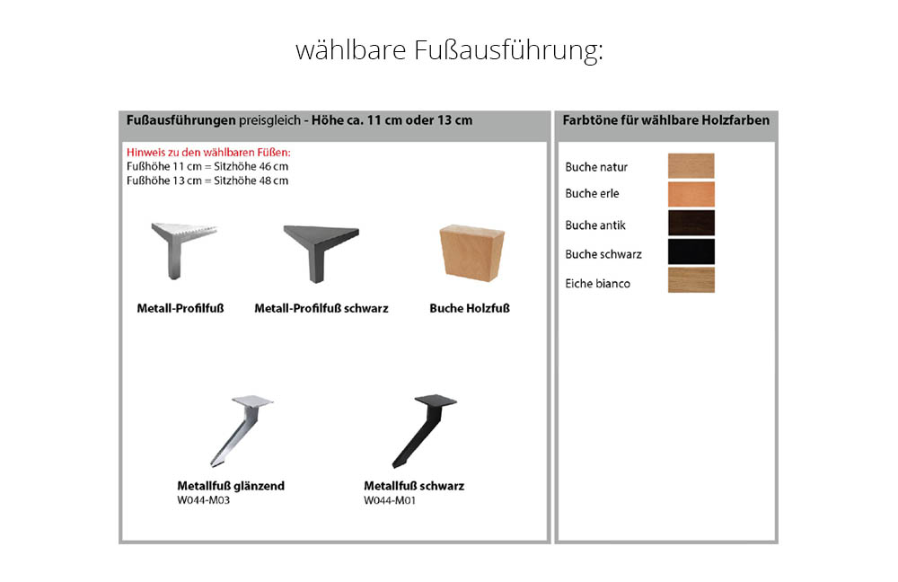 - Fußvariante: Metall-Profilfuß schwarz, ca. 11 cm