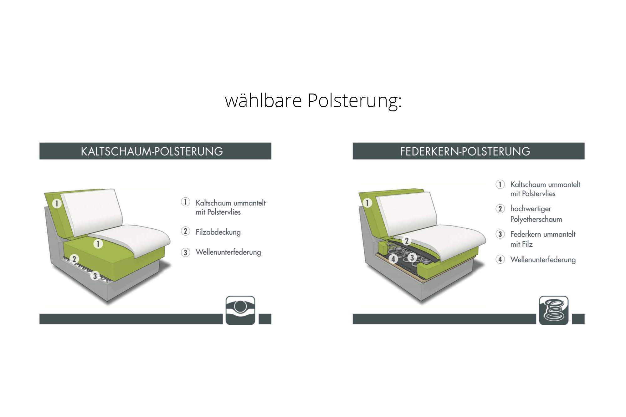 - Rücken: hochelastische Polstergurte mit hochwertigem Kaltschaum