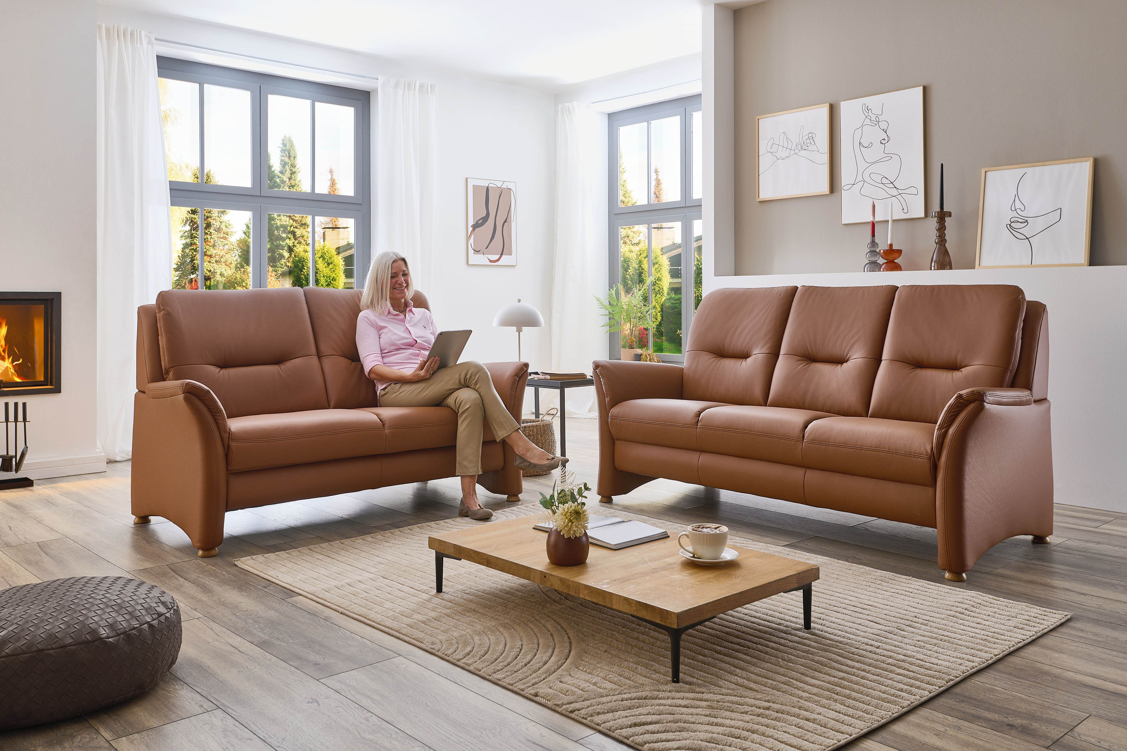 Eine adrette Polstergarnitur, welche sich in unserem Angebot aus einem ca. 168 cm breiten 2,5-Sitzer sowie einem ca. 194 cm breiten 3-Sitzer zusammensetzt und dabei ausreichend Fläche für gemeinsames Beisammensein mit der Familie bietet, erhalten Sie mit dem Modell PN-PF19167 des Polstermöbelherstellers Polinova. Ein hochwertiges sowie zugleich elegantes, pigmentiertes Leder in der Farbe Parkett kleidet das bezaubernde Duo und sorgt für eine warme Farbgebung in Ihren Räumlichkeiten. In puncto Sitzkomfort erhalten Sie bei diesem Modell die Möglichkeit, aus drei verschiedenen Polsterungen Ihre favorisierte auszuwählen und so zu jeder Zeit einen traumhaften Wohlfühlgenuss zu erfahren - weg mit dem Alltagsstress, her mit der Glückseligkeit! Weitere Annehmlichkeiten, die das Leder-Duo noch attraktiver gestalten, finden Sie in den Zusatzoptionen und können gleich mitbestellt werden. Sowohl der 2,5-Sitzer als auch der 3-Sitzer lassen sich mit einem praktischen Bettkasten ausstatten. Dieser bietet ausreichend Stauraum, um Tagesdecken sowie Kissen stets geordnet und schnell unterzubringen. Stellen Sie sich Ihre Polstergarnitur ganz nach Ihren Wünschen sowie Vorlieben zusammen und erweitern Sie das Angebot mit einem passenden Sessel oder Hocker für einen zusätzlichen Sitzplatz. Zögern Sie nicht länger, das Modell PN-PF19167 von Polinova wartet darauf, auch in Ihrem Zuhause Einzug zu halten.