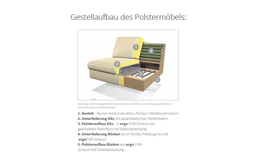 - Rücken: flexible Polstergurte, ergo-PUR-Schaum