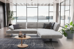 Ein elegantes Ecksofa mit extravagantem Design und beeindruckendem Komfort präsentiert sich in diesem Angebot - 16790 Chester aus dem Hause Willi Schillig. Mit einem herrlichen Sitzgefühl, auf einer Polsterung aus einem ergo-PUR-Schaum mit eingearbeitetem Federkern, beeindruckt das Modell, welches sich hier in der Zusammenstellung aus einem 2-Sitzer mit Seitenteil und einem Ecksofa mit offenem Abschluss zeigt. Gekleidet ist die ca. 314 x 224 cm große Eckgarnitur in einem zeitlos hellgrauen Chenille-Flachgewebe-Bezug und wird von schwarzen Metallkufen, die für viel Bodenfreiheit sorgen, getragen. Nach einem stressigen, hektischen Arbeitstag einfach mal abschalten und den Dingen nachgehen, die Ihnen dabei helfen, den Kopf freizubekommen - das Ecksofa mit offenem Abschluss bietet hierzu mit seiner großzügigen Breite sowie Länge den perfekten Platz. Was gibt es Schöneres, als die Beine auszustrecken, in der Zeitung oder mit dem Tablet im Internet zu stöbern, ein gutes Buch zu lesen oder im Fernsehen die Lieblingssendung zu verfolgen? Gestalten Sie ganz nach Ihrem Geschmack und erhöhen Sie den Gemütlichkeitsfaktor mit der optional hinzubuchbaren Seitenteilverstellung, einem oder mehreren Kissen mit Rolle, welche ganz einfach auf den Rücken der Garnitur aufgelegt werden sowie ein herrliches Anlehngefühl schaffen, oder kuscheligen, dekorativen Zierkissen in gewünschter Anzahl. Die Zusatzoptionen sowie die Bezugsauswahl unter dem Punkt "Farbe ändern" sind Ihnen dabei behilflich und sollten Sie eine andere Zusammenstellung wünschen, etwa als zweiteilige Polstergruppe oder als andere Eckvariante, können Sie unseren Polsterplaner nutzen oder unsere freundlichen Einrichtungs-Experten kontaktieren. 16790 Chester von Willi Schillig - "Schlichte Eleganz mit Special Effects."