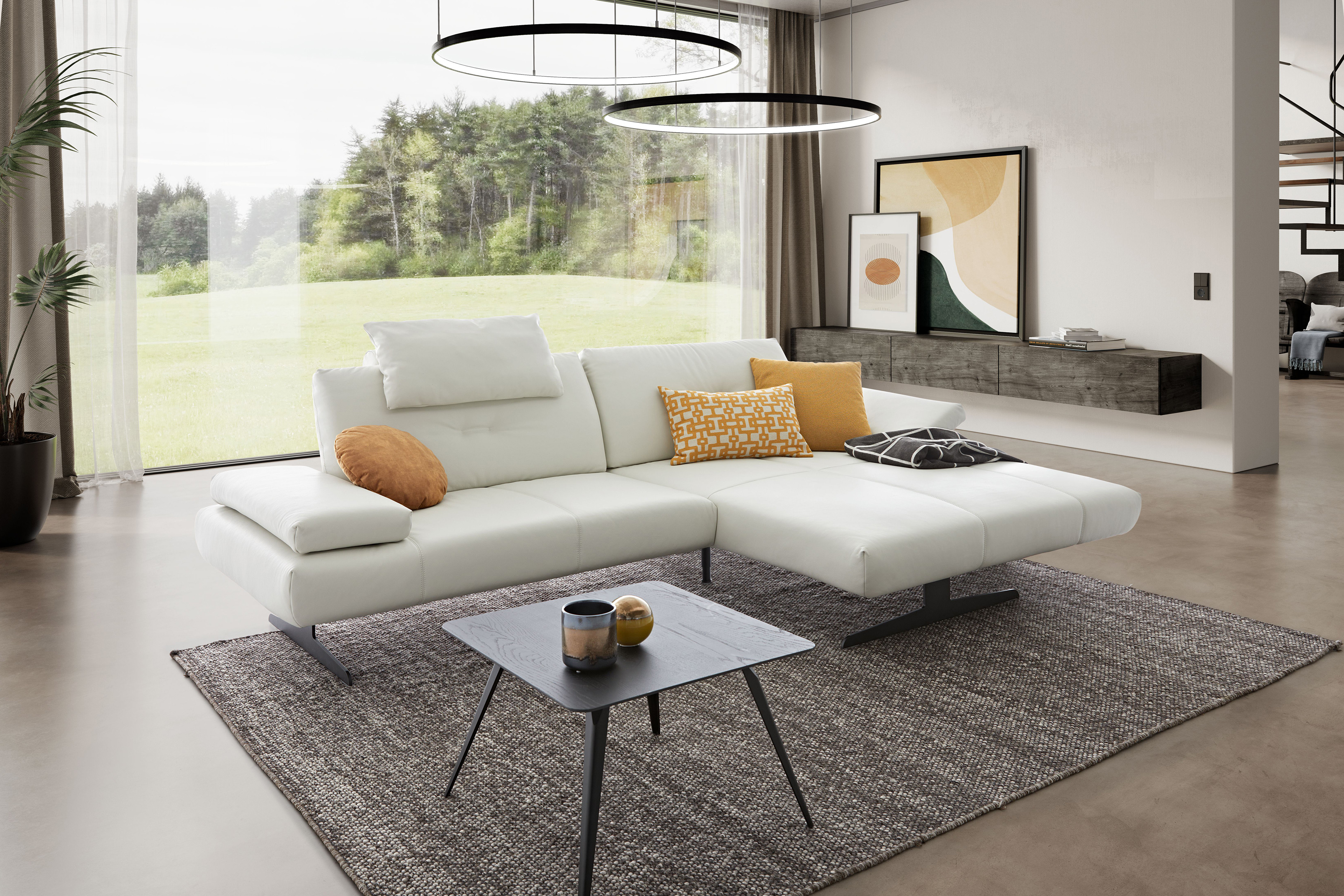 16790 Chester im cremefarbenen Semianilinleder aus dem Hause Willi Schillig - eine moderne Polstergarnitur zum Wohlfühlen und der perfekte Ort, um Ruhe sowie Entspannung zu finden. Eine modelltypische Sitztiefenverstellung in beiden Elementen, mit welcher der Rücken um einige Zentimeter nach hinten versetzt werden kann, verschafft einen ausgezeichneten Komfort beim Verweilen, ganz für sich allein oder auch in geselliger Runde. Einzeln lassen sich die Rückenlehnen von ca. 62 cm Sitztiefe auf bequeme ca. 88 cm verstellen und bieten so eine individuelle Sitzplatzgestaltung für jedermann. In Verbindung mit der bequemen Sitzausführung aus einem hochwertigen ergo-PUR-Schaum mit eingearbeitetem Federkern auf dauerelastischen Wellenfedern und einem Rücken, ebenfalls aus einem ergo-PUR-Schaum sowie flexiblen Polstergurten, garantiert das Willi Schillig Sofa ein hervorragendes Sitzvergnügen. Erweitern Sie diesen Komfort mit einer Seitenteilverstellung, einem oder zwei Kissen mit Rolle, diese werden ganz einfach auf den Rücken der Polstergarnitur aufgelegt und bieten einen herrlich kuscheligen Anlehnkomfort, sowie farbig abgestimmten, dekorativen Zierkissen, und schaffen Sie sich Ihren ganz eigenen Lieblingsplatz für ruhige Momente - lassen Sie nach einem stressigen Tag einfach mal die Seele baumeln! Mit dem Polsterplaner lässt sich 16790 Chester von Willi Schillig in weiteren Kombinationen zusammenstellen und mit der Bezugsauswahl unter dem Punkt "Farbe ändern" in zahlreichen Stoffen, Lederarten sowie wundervollen Farben beziehen.