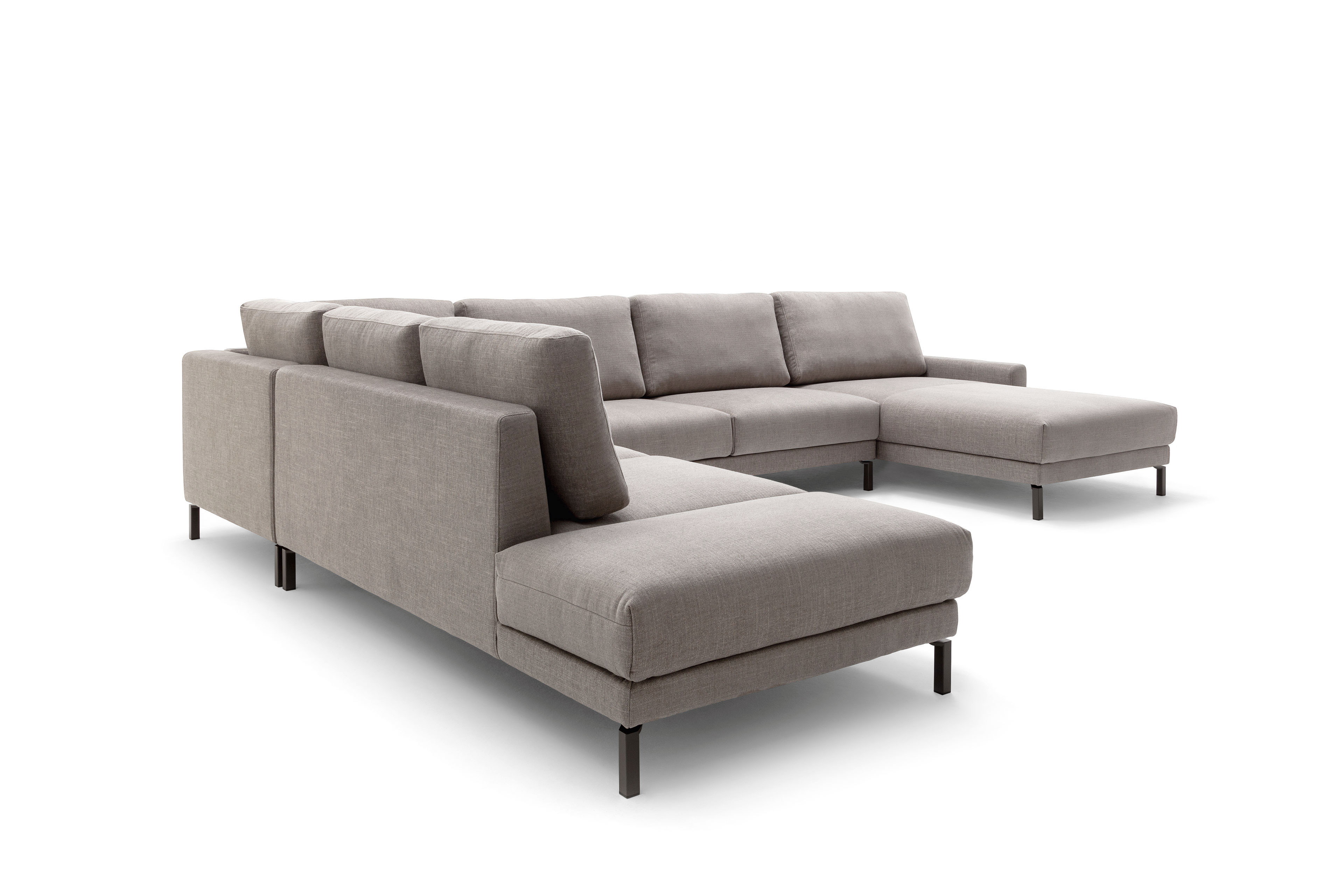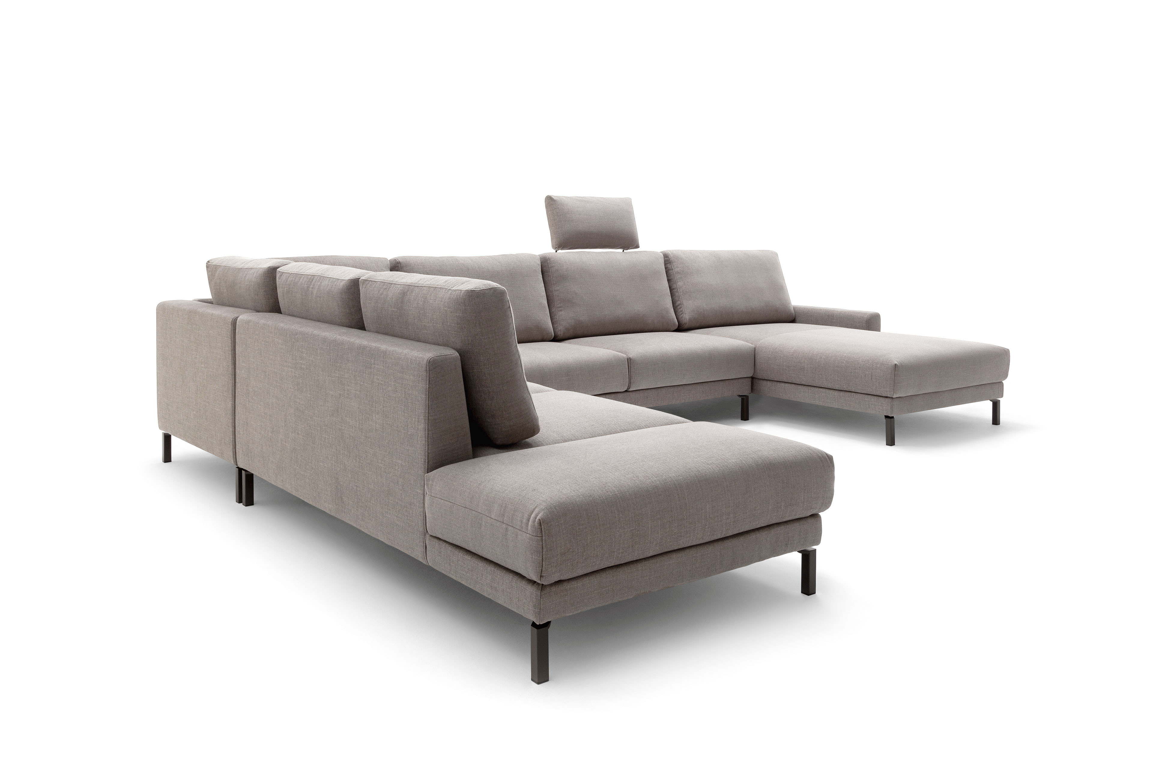 Das Polstersofa CR.450 von creation by Rolf Benz steht für modernen Luxus, zeitlose Eleganz und kompromisslose Qualität. Mit seiner großzügigen U-Form und dem imposanten Stellmaß von circa 285 x 389 x 178 cm wird dieses Sofa zum Mittelpunkt anspruchsvoller Wohnkonzepte. Klare Linien, ausgewogene Proportionen und eine elegante Formsprache sorgen dafür, dass sich das Couchmodell CR.450 harmonisch in moderne wie auch klassisch-elegante Interieurs einfügt. Gefertigt in hochwertiger Qualität aus dem Schwarzwald, überzeugt die Polstergarnitur durch präzise Verarbeitung, langlebige Materialien und ein exzellentes Sitzgefühl. Als echtes Systemmöbel lässt sich die creation by Rolf Benz Garnitur flexibel an Ihre persönlichen Bedürfnisse anpassen. Wählen Sie die optionalen Kopfstützen für zusätzlichen Komfort, kombinieren Sie verschiedene Armlehnen- oder Fußausführungen und gestalten Sie Ihr Sofa so individuell wie Ihren Wohnstil. Ein besonderes Highlight ist der echt bezogene Rücken, der die Garnitur frei im Raum platzierbar macht. Dadurch eignet sich das Modell ideal als stilvolle Abgrenzung zum Essbereich oder zur offenen Wohnküche - perfekt für großzügige Wohnräume. Darüber hinaus ist das Sofa in zahlreichen Bezügen erhältlich, wahlweise in edlem Leder oder knalligem Stoff, sodass Sie Farbe und Haptik exakt auf Ihr Ambiente abstimmen können. Die Wohnlandschaft CR.450 von creation by Rolf Benz erfüllt höchste Ansprüche an Komfort und vereint Design auf höchstem Niveau. Erstellen Sie sich Ihren ganz persönlichen Traum vom Luxussofa - mit einem Möbelstück, das Individualität, Beschaffenheit und zeitloses Design meisterhaft verbindet.