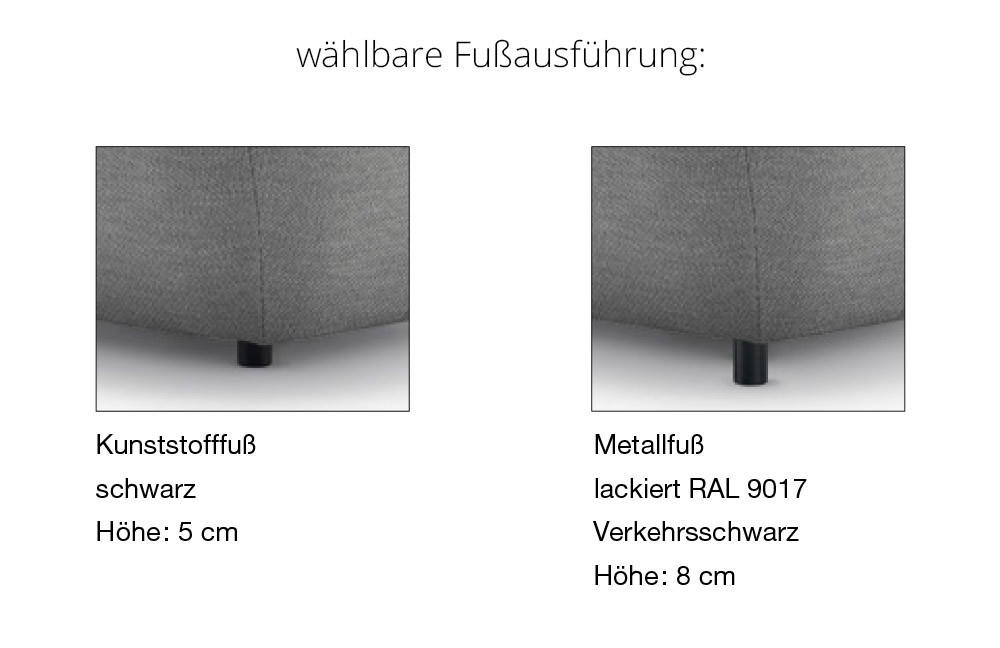 Die Hockerbank passt sich der gewählten Sitzhöhe, Fußausführung und Sitzpolsterung der Garnitur an. (Art-Nr. PB 480/100)