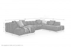 Diese gutaussehende Wohnlandschaft wurde für Menschen geschaffen, die viel Platz, Design und gemütliche Entspannungsmomente zu schätzen wissen. Das Modell Lucy-LE25 von designwerk beeindruckt mit einer üppigen Stellfläche von ca. 169 x 386 x 255 cm und bietet Ihnen dank seiner hochwertigen Kaltschaumpolsterung einen außergewöhnlich guten Sitzkomfort - ideal für behagliche Fernsehabende, entspannte Spielrunden mit Freunden oder einfach zum Erholen nach einem langen Tag. Die U-Form des Sofas sorgt für eine offene, einladende Atmosphäre und integriert sich perfekt in moderne, großzügig geschnittene Wohnräume. Der Chenille-Flachgewebestoff im edlen Blau setzt dabei einen frischen Akzent. Blau zählt zu den beruhigendsten Farben der Raumgestaltung. Ein blaues Sofa vermittelt Ruhe, Klarheit und Gelassenheit - perfekt, um aus dem Wohnbereich einen Ort des Rückzugs zu machen. Gleichzeitig wirkt die Farbgebung sehr wertig wie auch elegant, sodass es sich hervorragend mit hellen Einrichtungskonzepten, Naturmaterialien oder schlichten Designerstücken kombinieren lässt. Die exzellente Verarbeitung sowie der angenehm weiche Bezug garantieren Langlebigkeit und tägliche Freude zu jedem Sitzmoment. Dank der großen Auswahl an Bezugsstoffen und Konfigurationen lässt sich Lucy-LE24 individuell an Stilrichtung sowie Wohnsituation anpassen - so entsteht ein Sitzmöbel, das optimal zu Ihrem Zuhause passt. Warten Sie nicht länger und bestellen Sie noch heute die designwerk Polstergarnitur in der Ausführung Ihrer Wahl.