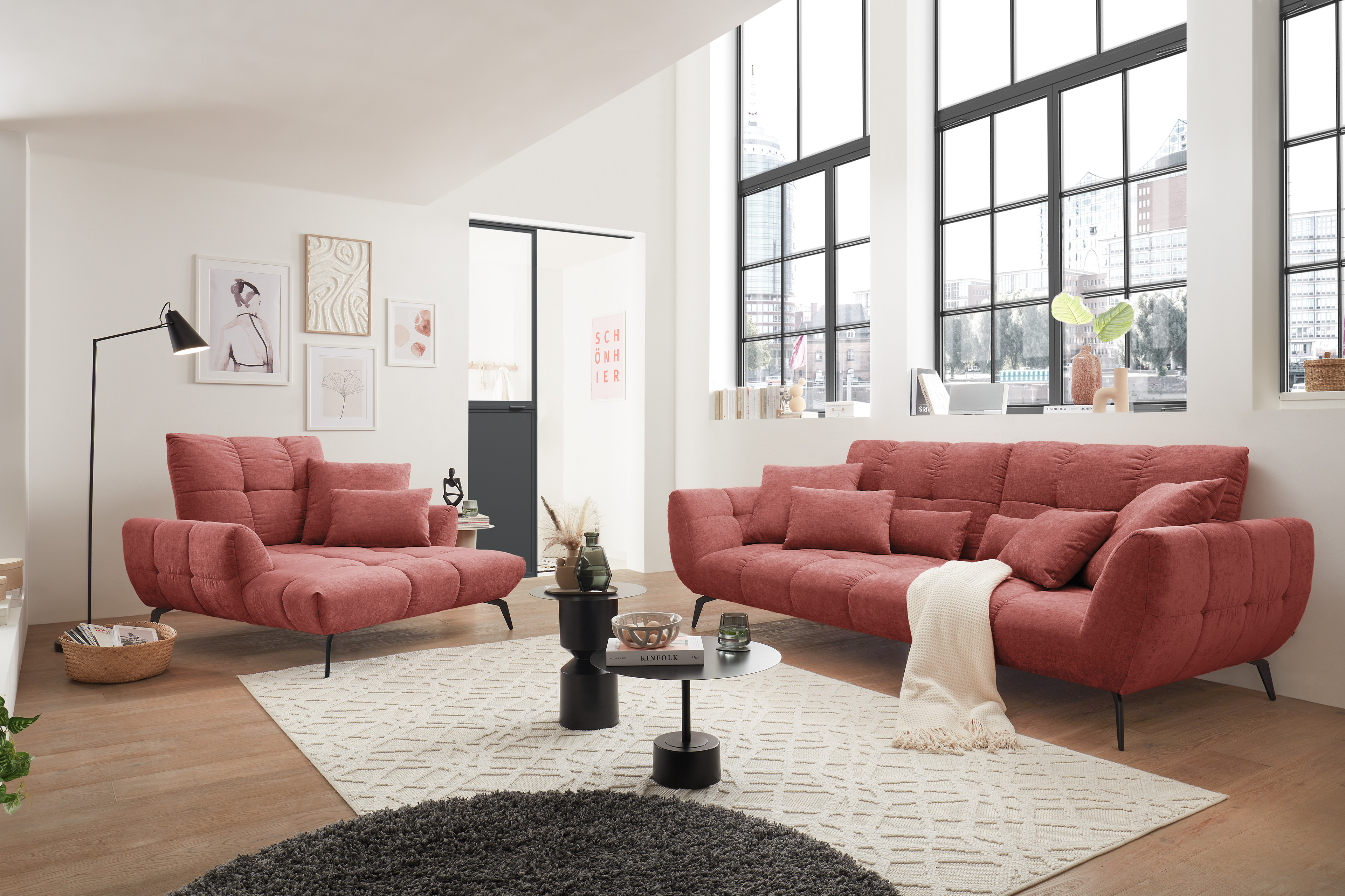 Das Megasofa Malibu-LE26 von set one by Musterring bringt mit seinem ausdrucksstarken Rotton Lebendigkeit sowie Eleganz in Ihr Wohnambiente. Die warme Farbnuance verleiht dem Raum eine behagliche Ausstrahlung und schafft ein harmonisches Zusammenspiel aus Modernität sowie Gemütlichkeit. So entsteht ein Ort, der gleichermaßen Ruhe spendet und darüber hinaus auch wunderbar zum längeren Verweilen einlädt. Das hochwertige Chenille-Flachgewebe überzeugt nicht nur optisch, sondern fühlt sich auch angenehm weich an. Die bequeme Polsterung sorgt für ein entspanntes Sitz- sowie Liegegefühl – perfekt für gemütliche Abende, ruhige Stunden mit einem guten Buch in der Hand oder gesellige Runden mit der Familie. Die großzügige Sitzfläche mit einer Breite von ca. 260 cm bietet Ihnen ausreichend Platz zum Zurücklehnen, Wohlfühlen oder einfach zum Abschalten vom Alltag. Durch flexible Funktionen, die Sie optional hinzubuchen können, lässt sich das Polstersofa individuell anpassen und bietet Ihnen so maximalen Komfort in jeder Situation. So kann beispielsweise eine verstellbare Sitztiefenverstellung oder eine Rückenneigungsfunktion für zusätzlichen Sitzkomfort sorgen und aus dem Einzelsofa wird im Handumdrehen ihr persönlicher Rückzugsort. Das moderne Design wird durch den charakteristischen Farbton stilvoll ergänzt und setzt gezielte Akzente im Raum, ohne sich in den Vordergrund zu drängen. So fügt sich das Megasofa mühelos in verschiedene Einrichtungsstile ein – von modern bis gemütlich-elegant. Wahlweise lässt sich der 2-Sitzer mit einem stilvollen Loveseat, einem praktischen Hocker sowie passenden Zierkissen ergänzen, um das Wohnkonzept perfekt abzurunden. Ein Bigsofa, das Design, Komfort sowie Wohnlichkeit auf harmonische Weise verbindet und Ihrem Zuhause eine besondere Note verleiht – das set one by Musterring Sofa Malibu-LE26.