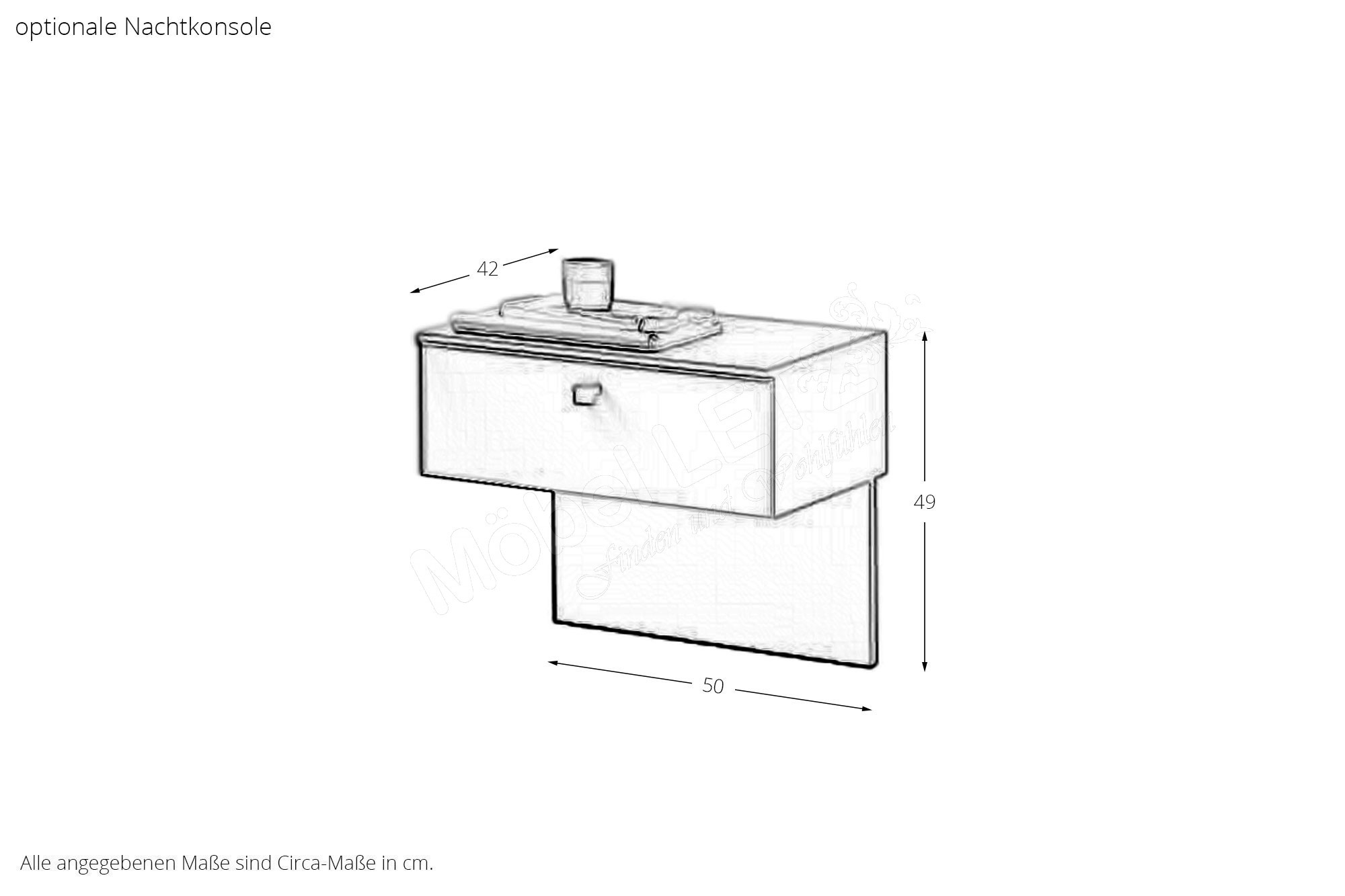 - Bett: Seitenhöhe ca. 49 cm, Kopfteilhöhe ca. 101 cm
