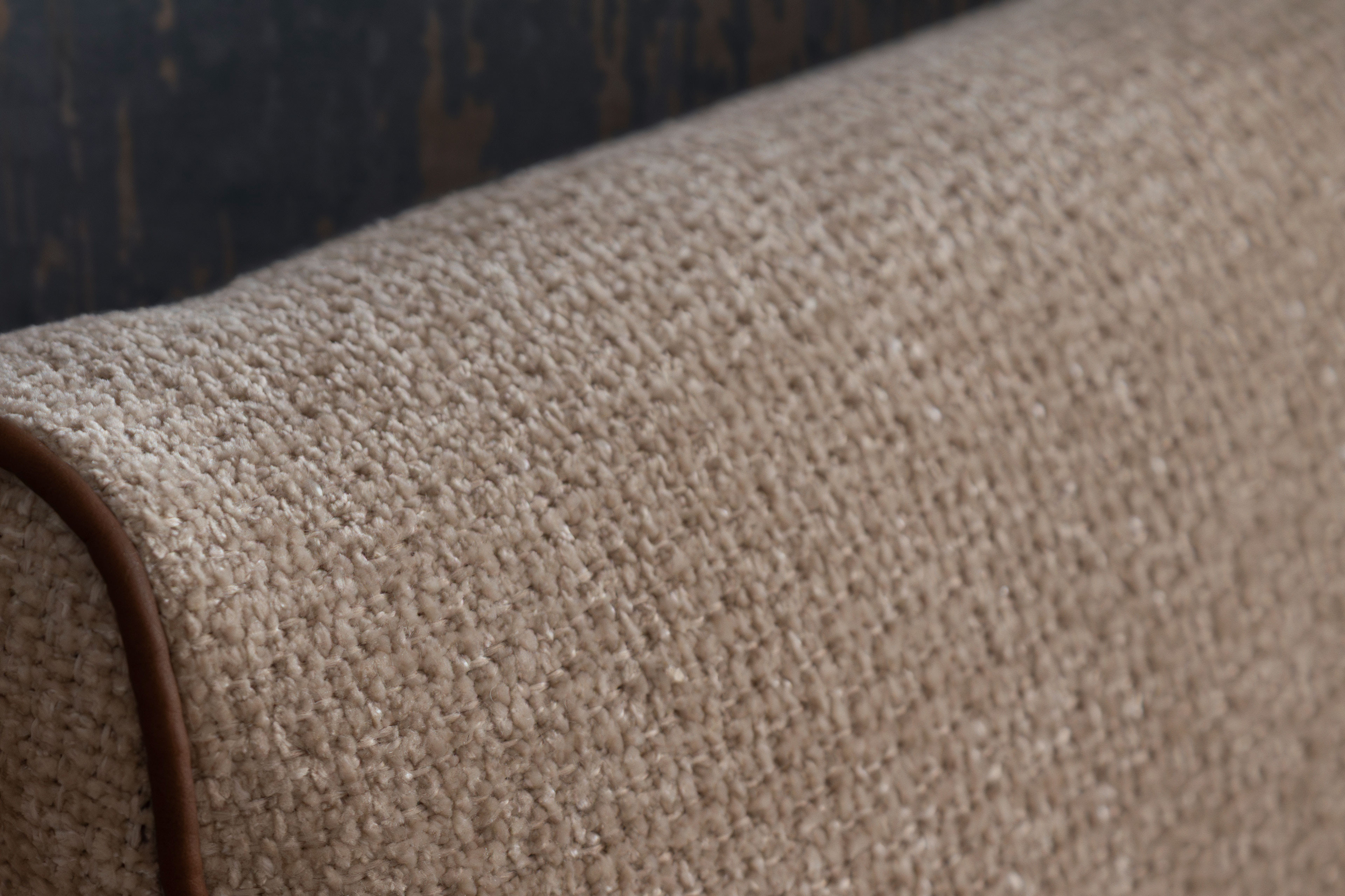 - Bett: Komfortbett ohne Lattenroste und Matratzen, mit Polsterkopfteil Webstoff cream (100% Polyester), Keder braun