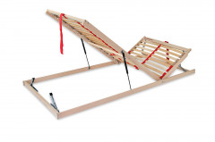 - Funktion: manuell verstellbares Kopf- und Fußteil, Fußteil aufklappbar mittels Gasdruckfeder (Zugang zum Bettkasten)