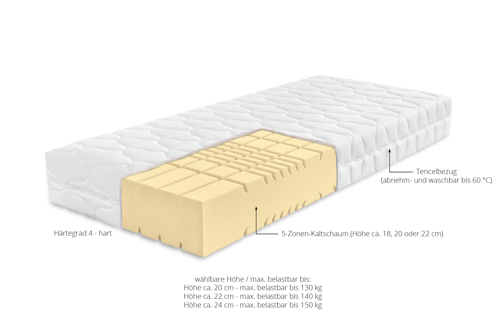 - Kern: 5-Zonen-Kaltschaum mit Quer- und Längsschnitt