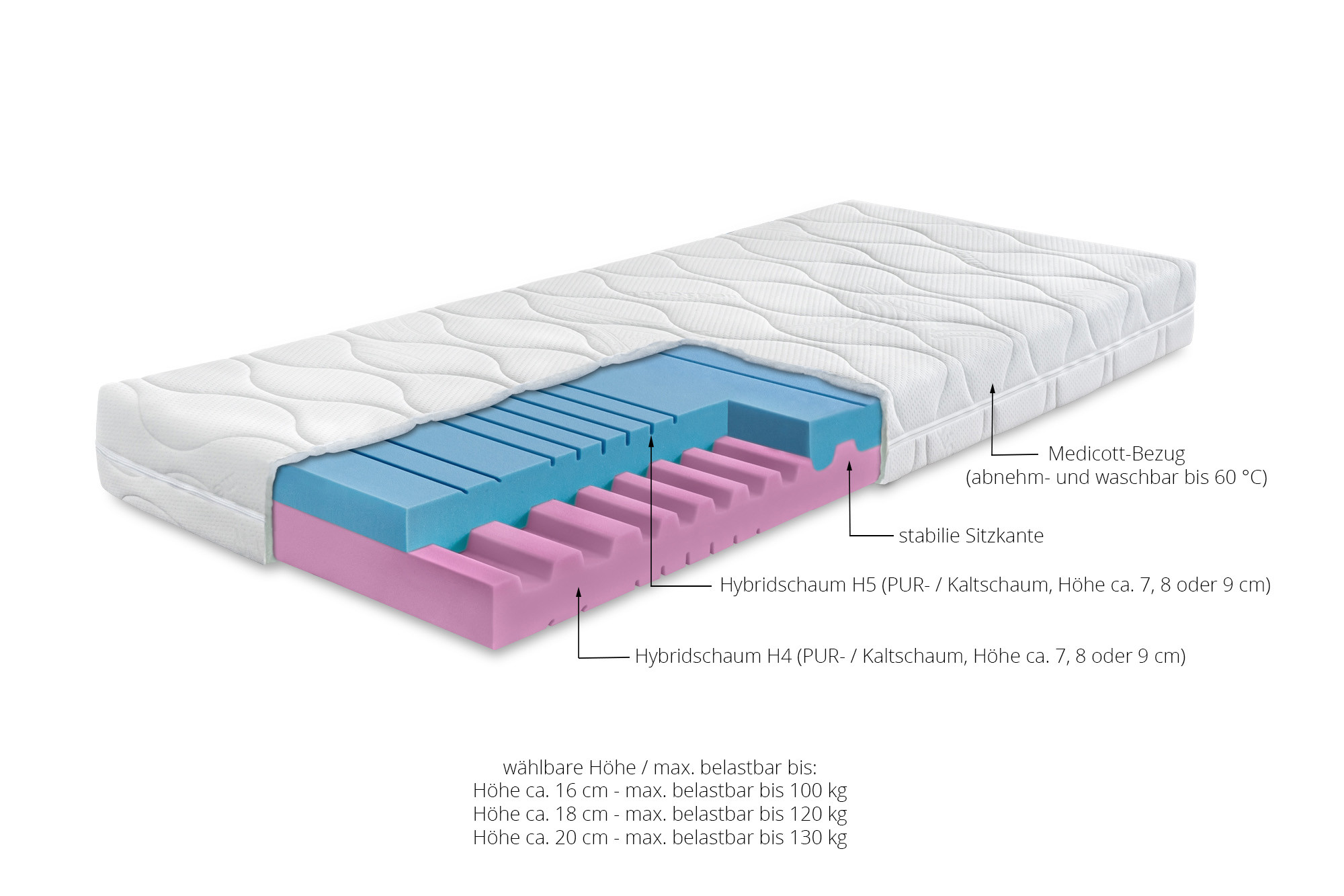 - 1 x 5-Zonen-Hybridschaum-Matratze, ca. BHT: 90/16/200 cm