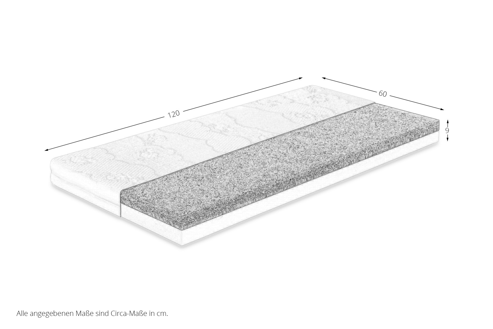 - 1 x Kaltschaum-Kokos-Matratze, ca. BHT: 60/9/120 cm