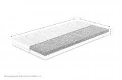 Änderungen der Farbe des Matratzenschaumstoffes vorbehalten. Jede Farbänderung des Schaumstoffes hat keinen Einfluss auf die Qualität und die Gebrauchseigenschaften der Matratze. Die Maßtoleranz der Matratze in Länge und Breite beträgt +/- 2 cm, die Toleranz der Höhe der Matratze beträgt +/- 1 cm.
