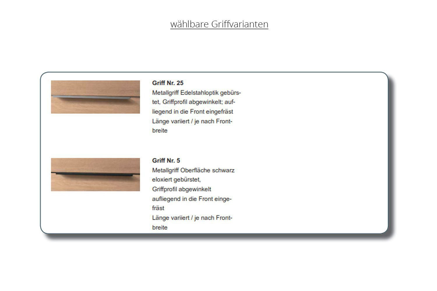 Griffausführung Schubkastenmodule jeweils wie gewählt