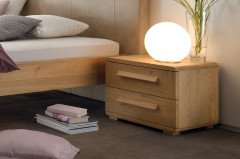 Was könnte den Mittelpunkt Ihres Schlafzimmers nicht schöner in Szene setzen als ein Nachttisch, der sich harmonisch und farblich in Ihr bestehendes Interieur einschmiegt. Ein perfektes Beispiel dafür, ist die Nachtkonsole Noma von Hasena, die sich hier in einem gebürsteten, geölten Massivholz aus Eiche präsentiert und zugleich durch eine Gesamtbreite von ca. 48 cm einen pompösen Auftritt hinlegt. Sie bietet durch ihre zwei Schubladen und die große Ablagefläche einen Ort für die Utensilien, die Ihnen wichtig sind: Sei es als Platz für Dekorationsartikel, die Ihnen Wärme sowie Wohlbefinden spenden, als Verstaufach für Taschentücher zum nächtlichen Liebesfilm oder als Abstellmöglichkeit für Chips und Getränke. Dank der wählbaren Fußausführung können Sie Noma auch mit einer Komforthöhe von ca. 57 cm ausstatten, wodurch Sie Ihre Gegenstände und Hilfsmittel stets griffbereit auf Höhe des Bettes haben, ohne sich unbequem verdrehen zu müssen. Mit der Nachtkonsole von Hasena holen Sie sich einen praktischen Helfer für den Alltag in Ihr Zuhause.