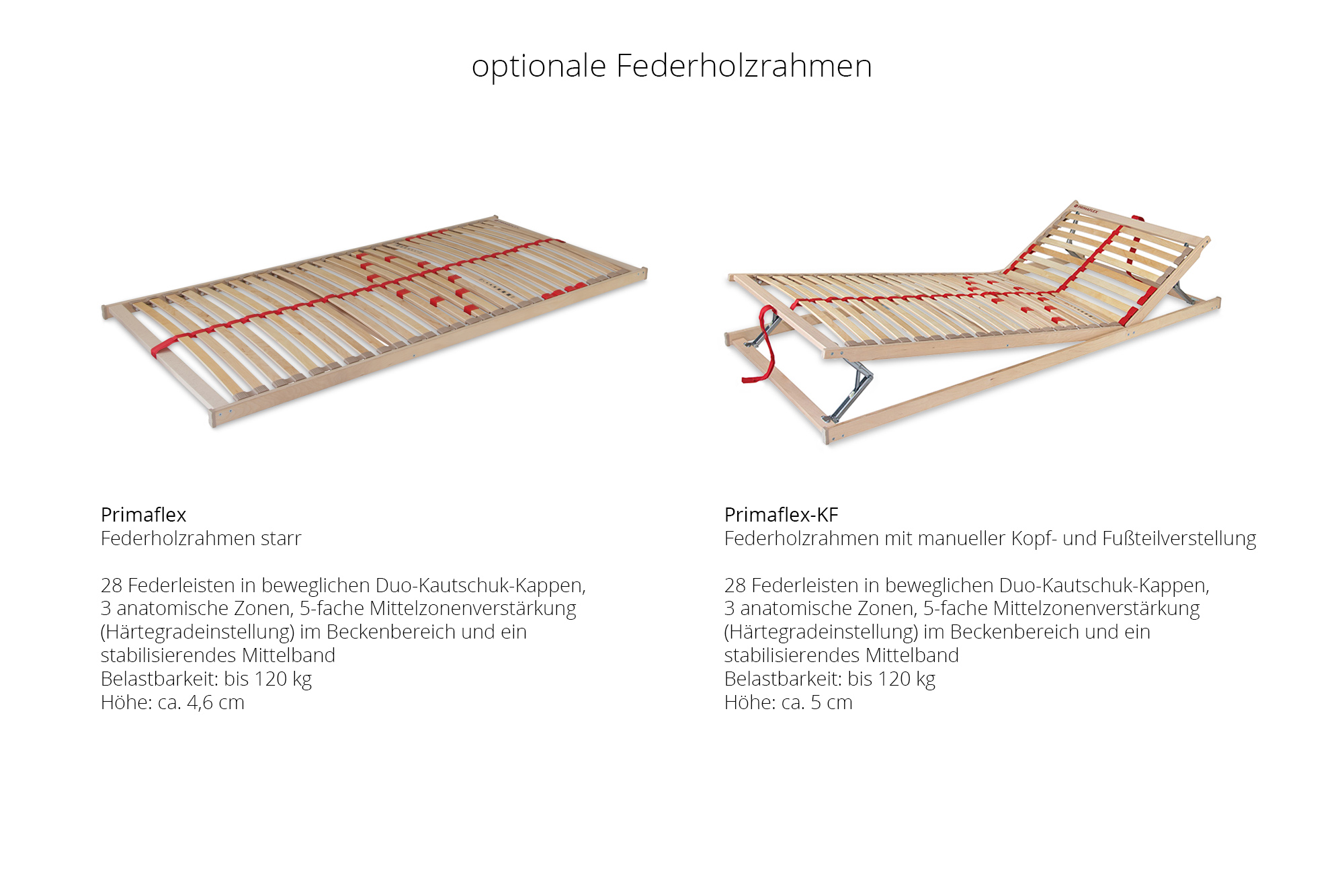 Primaflex KF - Federholzrahmen mit manueller Kopf- und Fußteilverstellung im Set (2x 90 x 200 cm)