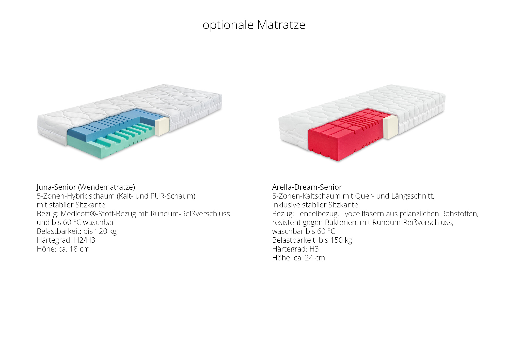 5-Zonen-Kaltschaum mit Quer- und Längsschnitt, inklusive stabiler Sitzkante