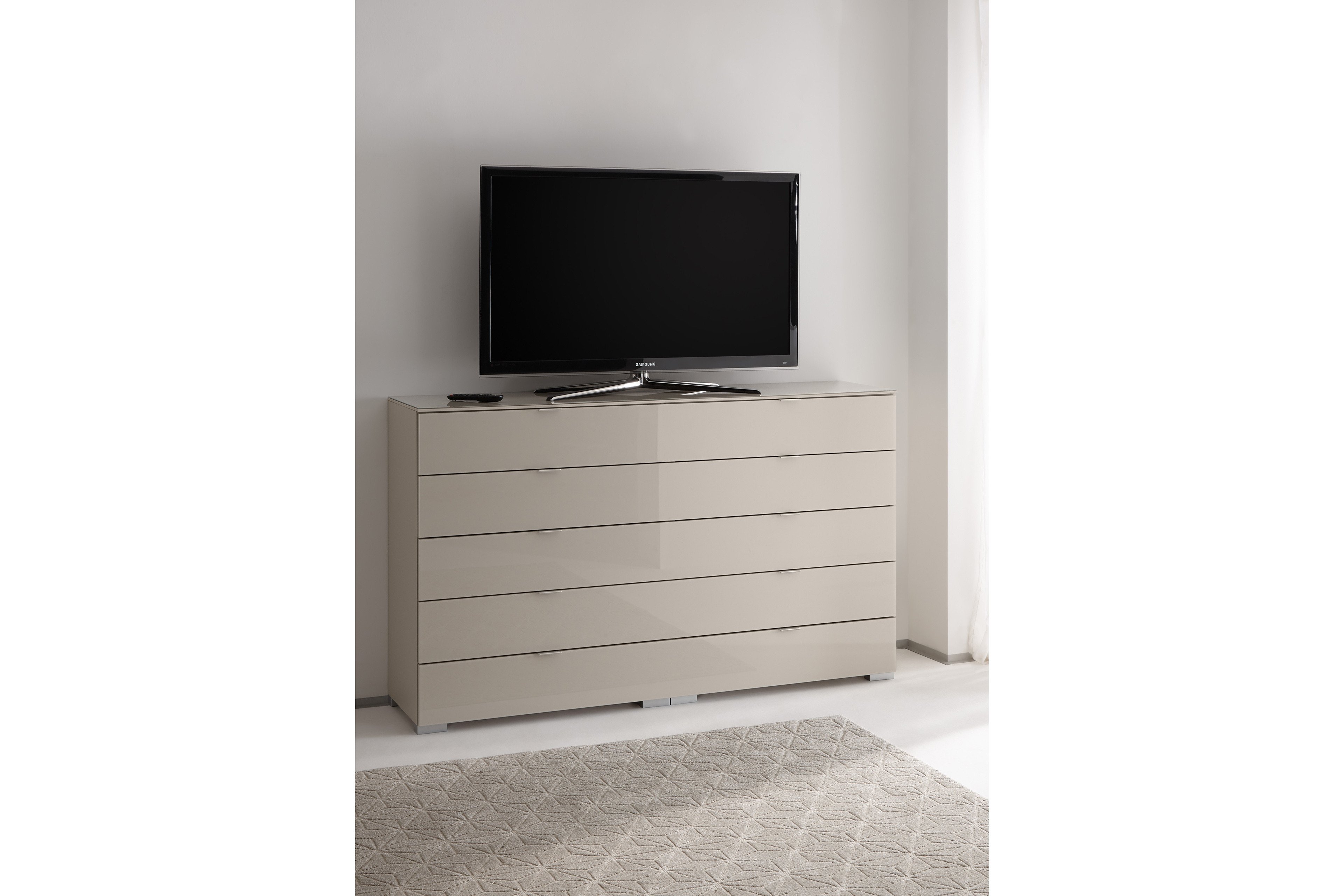 Die große XL-Kommode Sonate von Staud eignet sich als perfekte Stauraum-Ergänzung in allen Räumen und bietet Ihnen als etwa 160 cm breite Ausführung außerordentlich viel Platz für allerlei schöne, nützliche und alltägliche Dinge. Alle fünf Schubladen sind im Inneren mittig unterteilt, sodass Ihnen mit dieser Kommode insgesamt zehn Fächer zur Verfügung stehen. Der weiche Sandton verbreitet eine wohltuende Wärme und macht Wohnräume richtig gemütlich. Die hochwertige Glasfront spiegelt sanft ihre Umgebung wider und verleiht der Staud Kommode einen glamourösen Effekt. Egal, wo die Großkommode bei Ihnen zum Einsatz kommt, alle Schubkästen lassen sich dank ihres Vollauszuges komplett öffnen und schließen mit dem integrierten Softeinzug angenehm langsam und leise. Gönnen Sie sich Möbel, die funktional sind, Ordnung halten und mit ihrem Design den Alltag ein Stück schöner gestalten ...