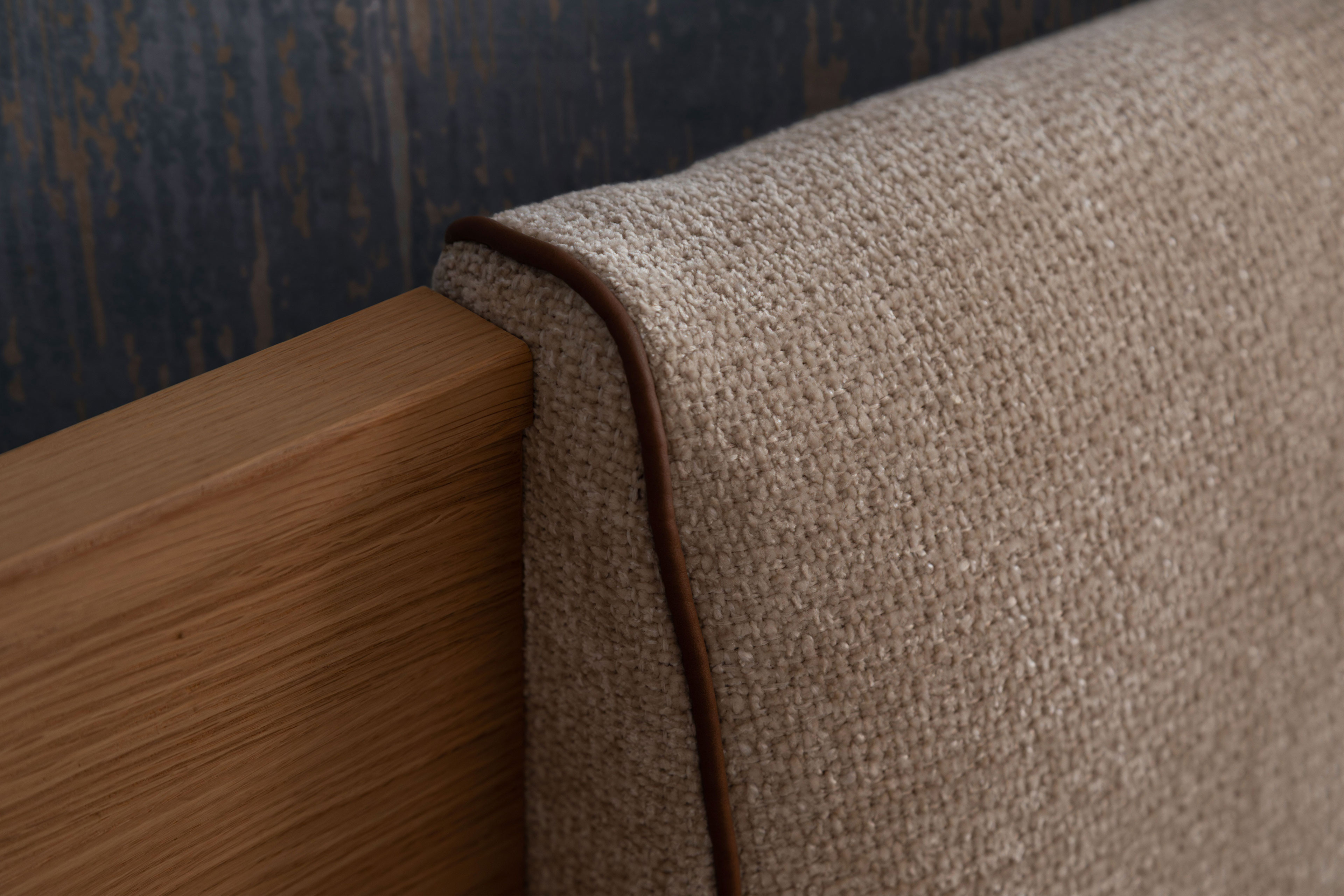 - Bett: ohne Lattenroste und Matratzen, mit Polsterkopfteil Webstoff cream (100% Polyester), Keder braun