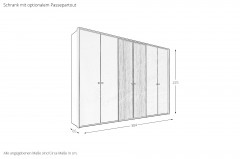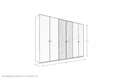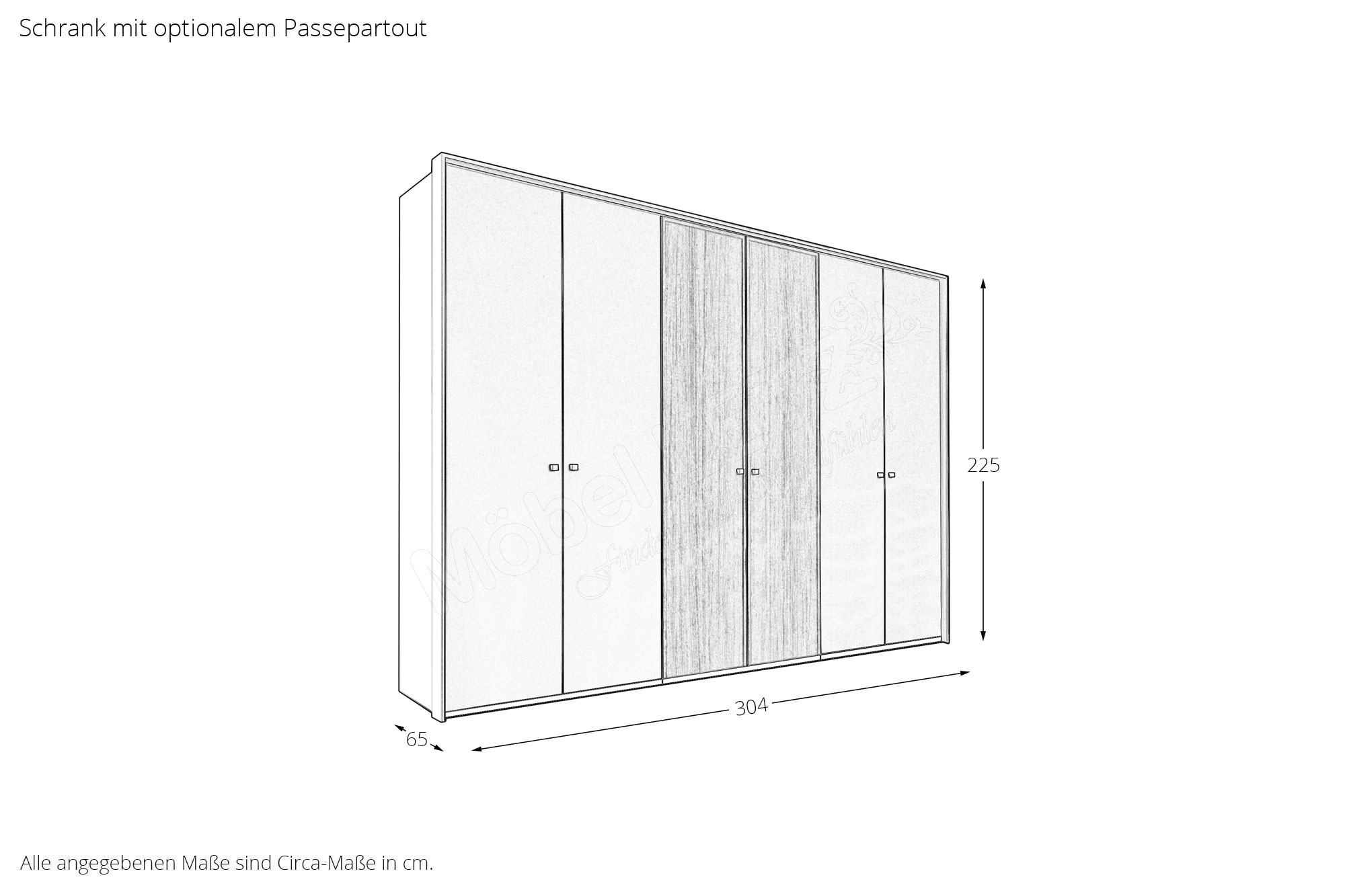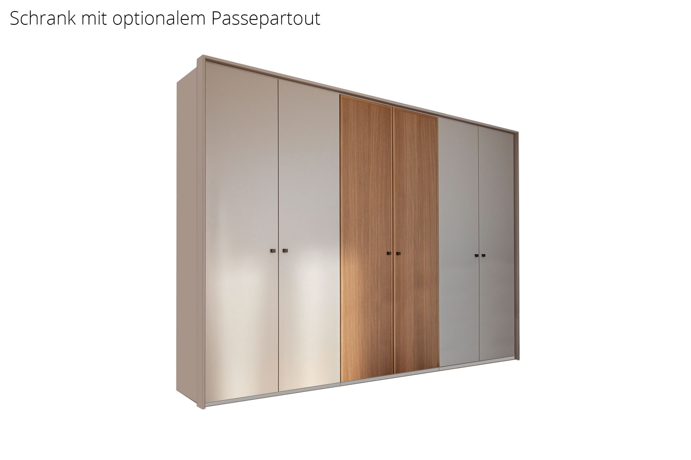 - Schrank: Drehtürenschrank, 6-türig, 4 Außentüren Dekor, 2 Mitteltüren Furnier