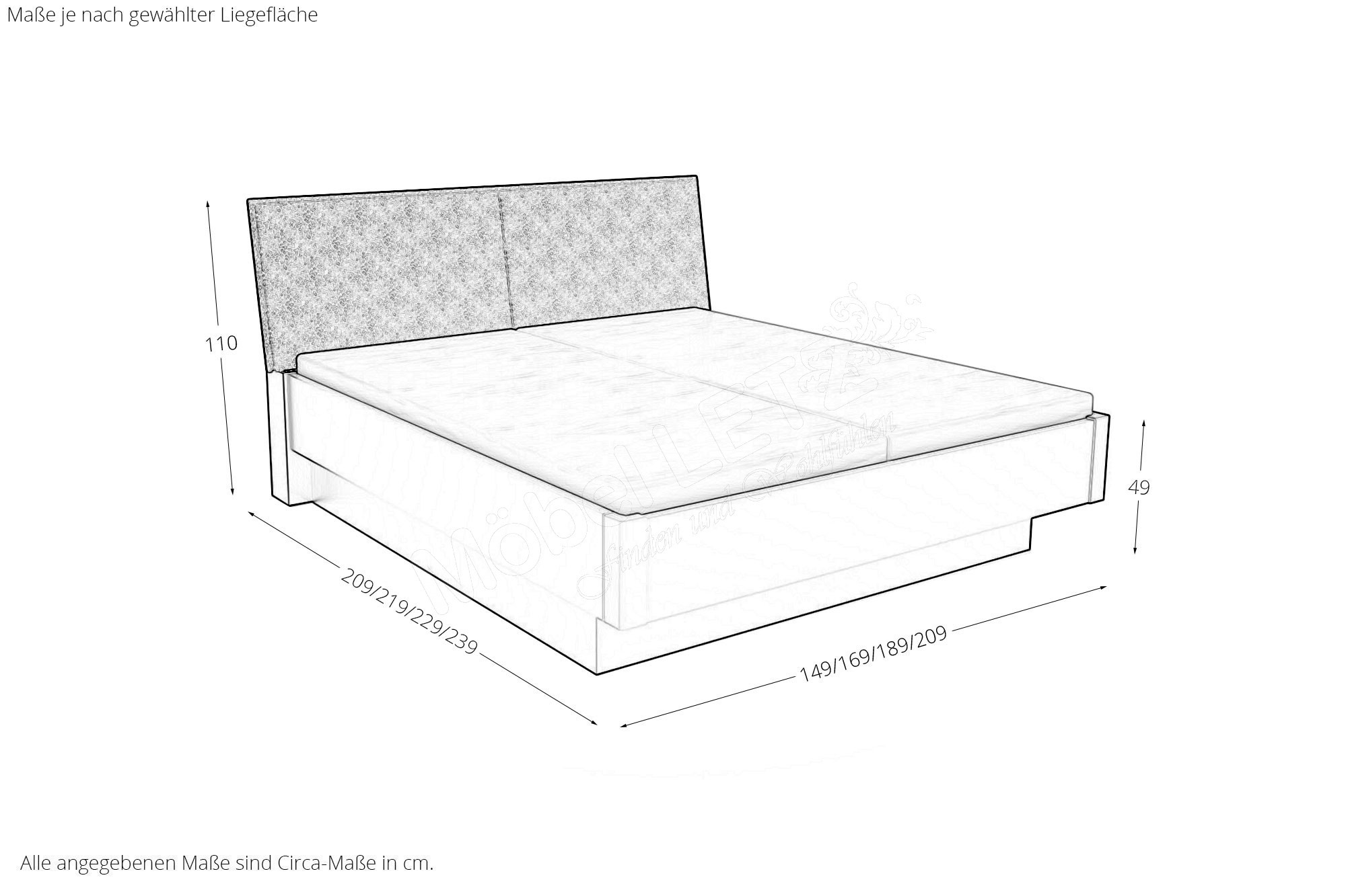 Liegefläche wie gewählt (Bettmaße wie angegeben)