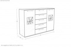 - Einlegeböden: ca. 23 mm stark, 4-fach arretiert und variabel einstellbar