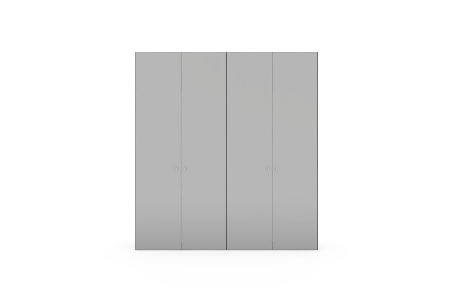 In einer etwas größeren Variante, mit ungefähr 203 cm in der Breite, stellt sich in diesem Angebot der Kurztiefenschrank aus der Longline-Kollektion von JUTZLER vor. Mit vier Drehtüren, die eine Oberfläche aus hellgrauem Mattglas haben, einem novaschwarzen Korpus und zierlichen Knopfgriffen erscheint der Schrank in einem modernen und edel anmutenden Look. Sie bevorzugen eine andere Farbe für die Glasauflage beziehungsweise eine alternative Oberflächen-Ausführung und/ oder ziehen optisch auffälligere Griffe vor? Stöbern Sie in aller Ruhe durch unsere zahlreichen Zusatzoptionen und wählen Sie wunschgemäß das Outfit für Ihren neuen Schrank aus. Der Innenraum, der hier bereits zwei Fachböden enthält, ist ebenfalls frei bestückbar. Ob zusätzliche Böden, Innenschubladen, Schuhablagen oder Kleiderstangen - hier finden Sie bevorzugtes Einrichtungszubehör. Um die Bedienung der Türen besonders komfortabel zu gestalten und das Schrank-Innere zu beleuchten, finden Sie auch Dämpfungsbeschläge und eine sensorgesteuerte LED-Beleuchtung in unseren Zukauf-Angeboten. Das Schrank-Programm von JUTZLER ... lässt fast keine Wünsche offen.