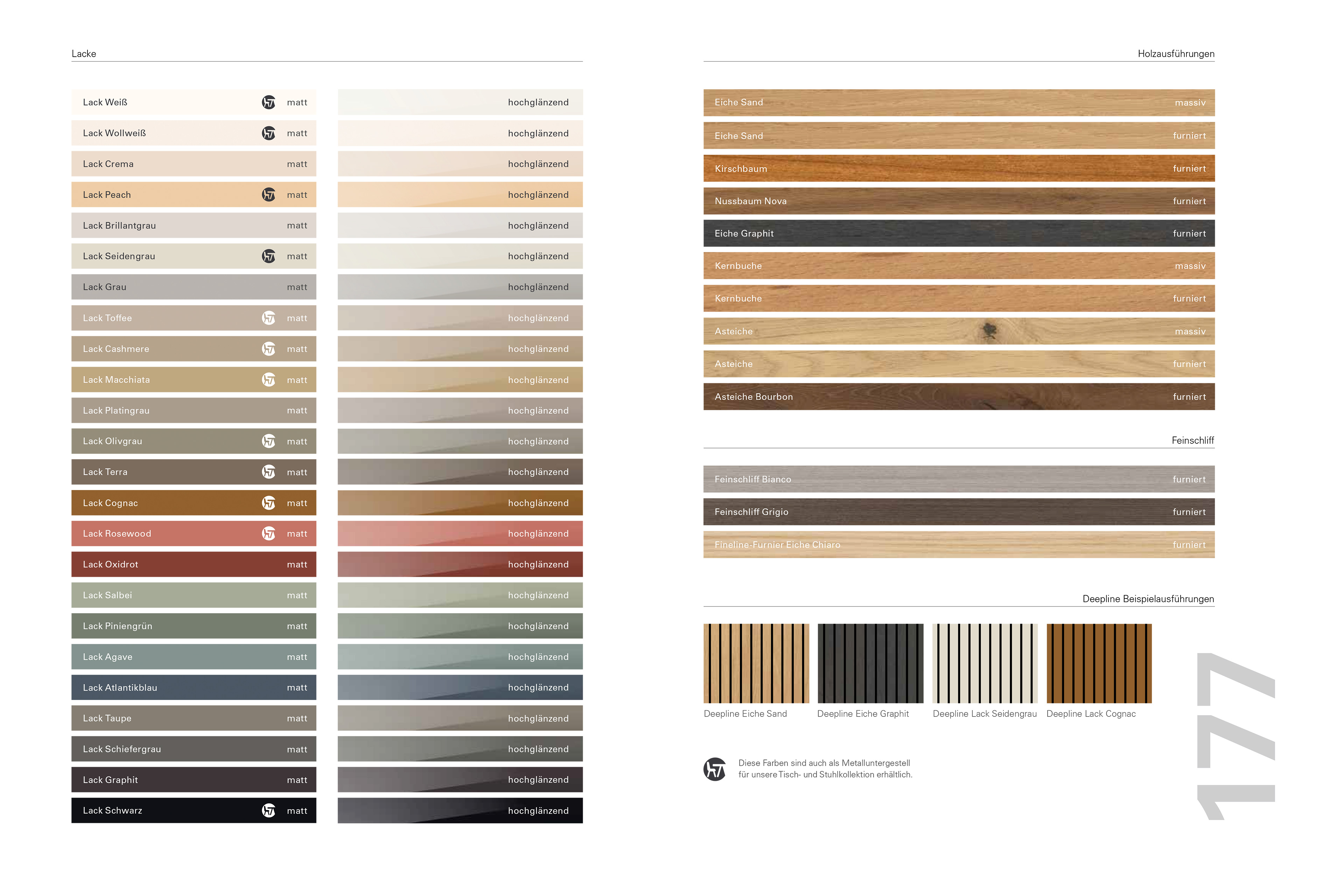 Furniere sind naturgewachsene Werkstoffe, die bei gleicher Holzart unterschiedliche natürliche Merkmale wie Farbe, Struktur, Maserung, Wuchsmerkmale aufweisen. Furniere sind dünne Holzblätter, die durch Schälen oder Messern von einem Stamm gewonnen werden. Diese abweichenden Natur- und Wachstumsmerkmale verleihen jedem Möbelstück ein einzigartiges Erscheinungsbild. Wie eine Haut gibt es dem Objekt sein unverwechselbares Gesicht und unterstreicht die Echtheit des Naturprodukts und verleiht ihm so seinen einzigartigen Charme.
