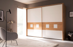 Ordnung war noch nie so schön – der Schwebetürenschrank der Serie Multiline von SCHÖNER WOHNEN bringt Wärme und Harmonie in Ihr Schlafzimmer. Das gelingt durch die Kombination von Balkeneiche-Furnier mit weißem Lack, die hier für ein stimmiges Gesamtbild sorgen und eine angenehme Wohnatmosphäre schaffen. Besonders praktisch sind die mit Schließdämpfung, Entgleisungsschutz und Bürstendichtung ausgestatteten Türen, die platzsparend geöffnet werden können. Unsere Zusatzoptionen bieten Ihnen die Möglichkeit, sowohl die Breite als auch die Höhe individuell festzulegen, und auch die Ausführungen von Korpus, Front und den Absetzungen sind dort konfigurierbar. Genau das ist die Stärke der Modellreihe, die so immer perfekt zu Ihnen und Ihrem Zuhause passt. In der abgebildeten Breite von etwa 300 cm stehen Ihnen vier Schrankabteile zur Verfügung, die acht Böden und vier Kleiderstangen zum sortierten Befüllen bereitstellen. Sie können mit wenigen Klicks das passende Schrankzubehör optional hinzufügen und dabei auch den gezeigten Passepartout mit integrierten LED-Stabbeleuchtungen auswählen. Multiline von SCHÖNER WOHNEN – Komfort und Optik in perfekter Balance.