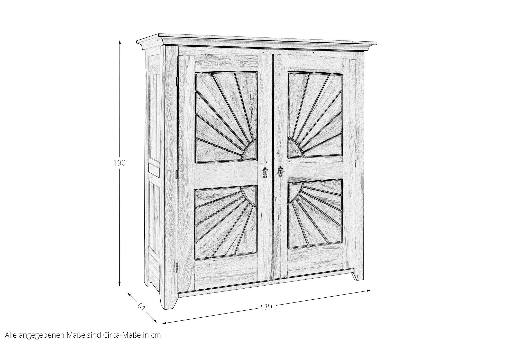 - Beschläge: Eisen schwarz patiniert