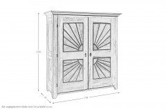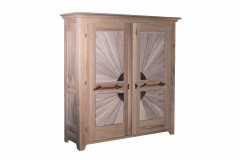 Mit diesem wunderschönen Kleiderschrank von Sprenger kommen Sie unabhängig von der Tageszeit in den Genuss des Anblicks von behaglichen Sonnenstrahlen. Die Serie Life-Schrank besteht aus drei Drehtürenschränken, die mit ihrem einmaligen Front-Design ein echter Blickfang in Ihrem Schlafzimmer sein können. Dies trifft natürlich auch auf den hier abgebildeten Schrank zu, bei dem ein Korpus aus weiß geölter Sumpfeiche auf gebürstete und weiß geölte Sumpfeiche als Absetzung trifft. Die Beschläge, die Dekorplatten und die beiden Dekoelemente aus schwarz patiniertem Eisen sorgen für ein stimmiges Gesamtbild. Ihre Jacken, Hemden und Blusen können stets griffbereit an den zwei Kleiderstangen aufgehängt werden. Zusätzlich bieten die beiden Fachböden ausreichend Platz für Hosen, T-Shirts oder Pullover. Klassisch, robust und zeitlos elegant – Möbel von Sprenger.