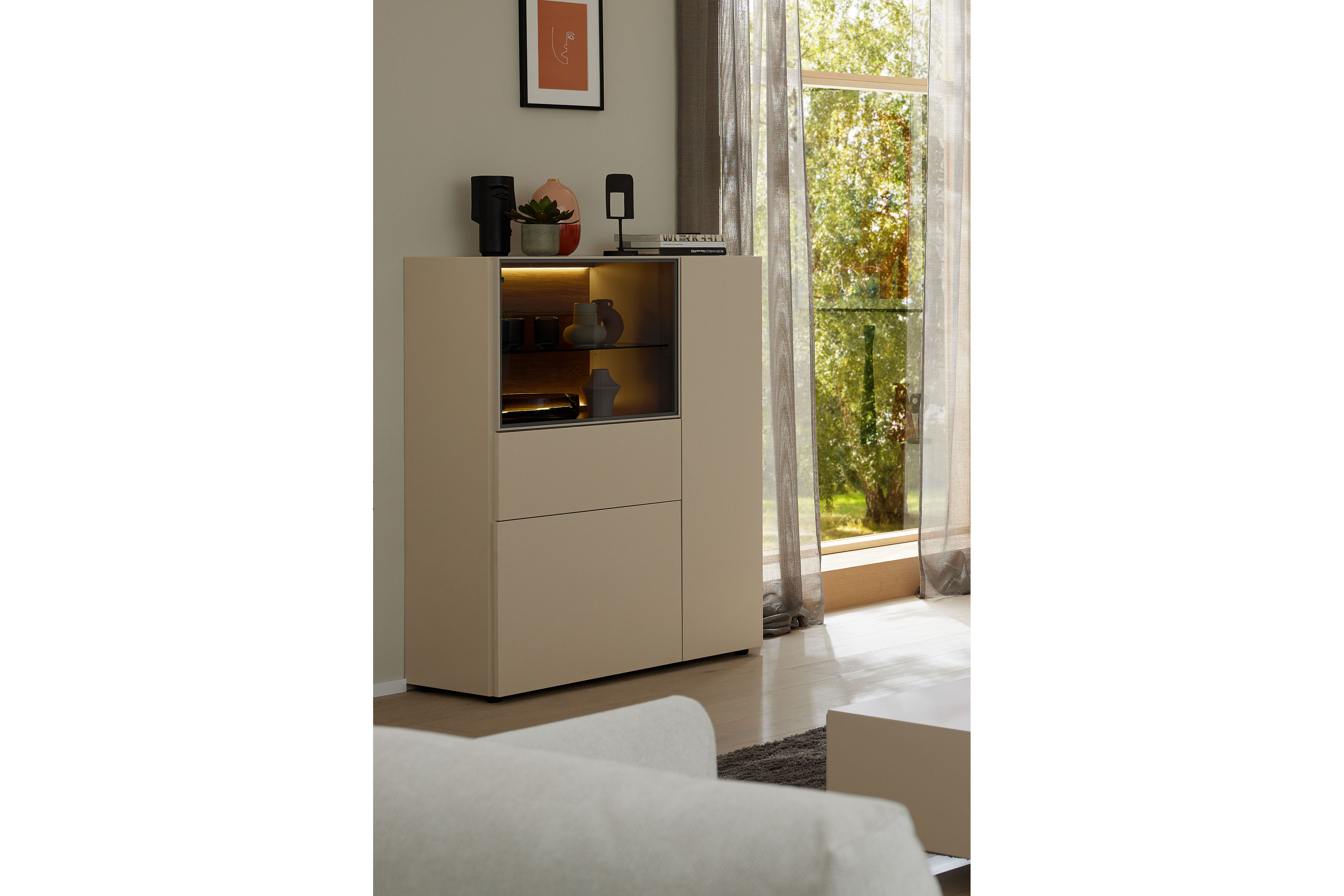 Highboard von Musterring - Modell Simea in Kaschmir/ Eiche Simea - Zeitlose Form. Spürbare Qualität.