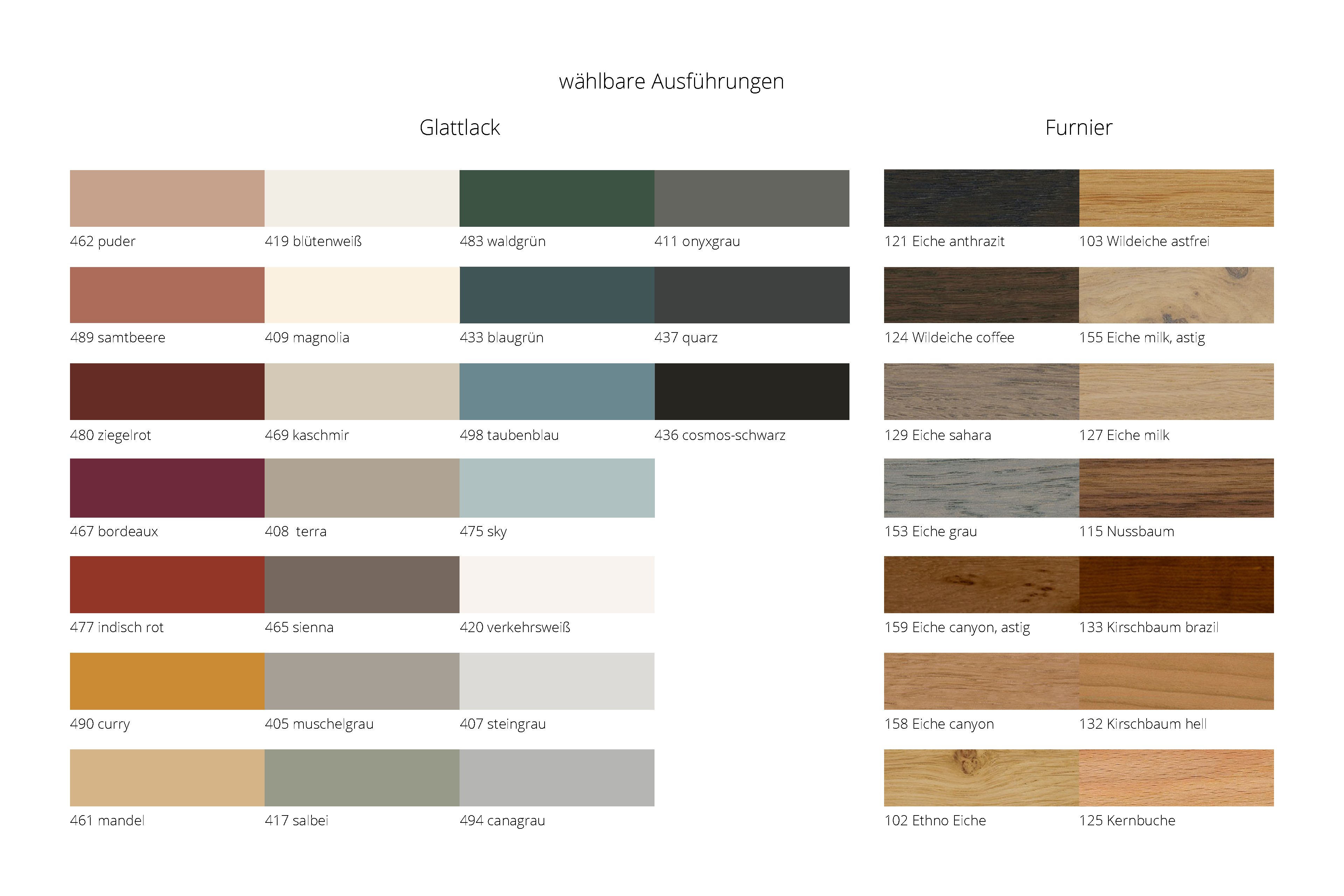 - sichtbare Rückwände: Glattlack, samtbeere, Rillenstruktur