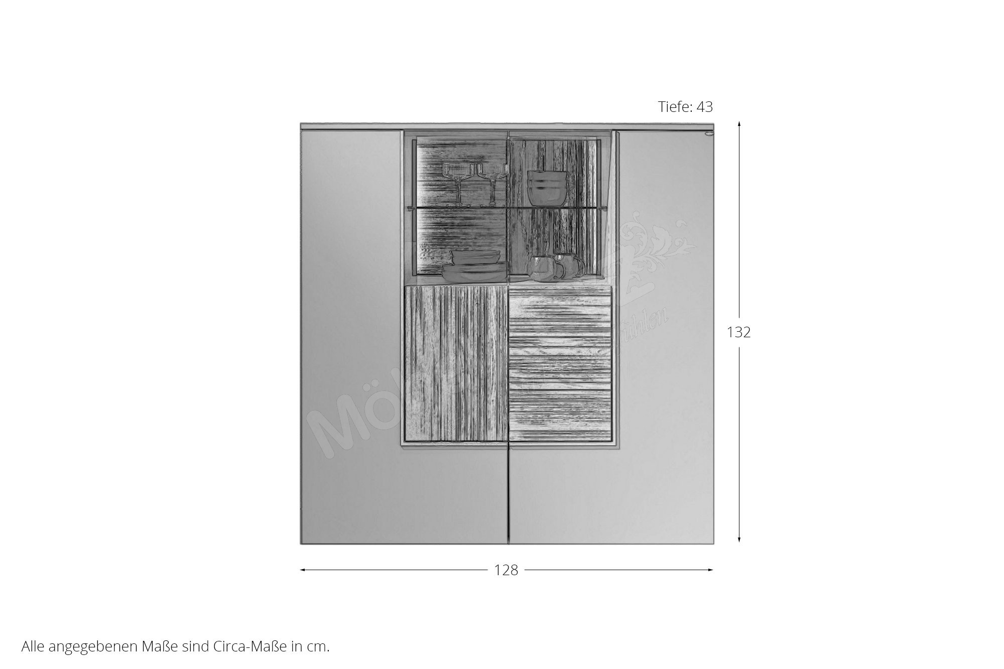 - Highboard mit 2 Holz-/ Glastüren, 6 Holzböden und 1 Glasboden