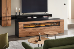 - Lowboard mit 1 Holzklappe mit Glasausschnitt, 1 Doppelschubkasten und 1 Holzboden