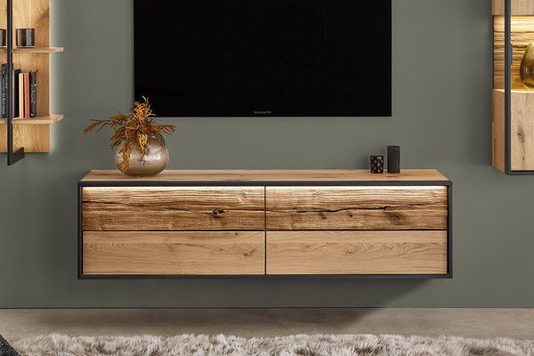 TV-Schränke gibt es in den unterschiedlichsten Ausführungen, beispielsweise als TV-Lowboard. Dieses TV-Möbel ist ein Klassiker und zeichnet sich, wie der Name bereits vermuten lässt, durch seine geringe Höhe aus, ist in der Breite dafür überaus variabel. So findet sich für den kleinen Fernseher, etwa das Zweitgerät im Gästezimmer, ein ebenso adäquates TV-Lowboard, wie für den Oberklasse-Fernseher mit OLED- oder QLED-Technik. Meist gesellt sich bei dem TV-Lowboard zu der zentralen Stellfläche für das TV-Gerät eine bunte Mischung aus offenen und geschlossenen Fächern sowie Türen oder Klappen, wodurch allerlei Raum für das benötigte Zubehör geboten wird. Ähnlich verhält es sich bei einer anderen Variante der TV-Möbel. Ein TV-Schrank kann sich beispielsweise auch als offensichtlicher Schrank präsentieren, ohne seine Bestimmung als Fernsehmöbel auf den ersten Blick zu offenbaren, denn er verbirgt seinen „Schatz“ hinter Türen. Je nach Modell und Hersteller handelt es sich um Dreh- oder Schiebetüren, welche teilweise sogar per Schloss gesichert werden können, um unbefugten Zugriff zu verhindern. Für welchen TV-Schrank Sie sich entscheiden, bleibt ganz Ihnen überlassen - eine umfangreiche Auswahl erhalten Sie auf jeden Fall im Möbel Letz Online-Shop.