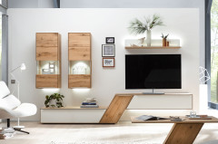 Wohnwand von Decker - Modell Ramos V15401 Asteiche massiv, inklusive Beleuchtung Natürlich schön - und noch schöner in Ihrem Wohnzimmer.