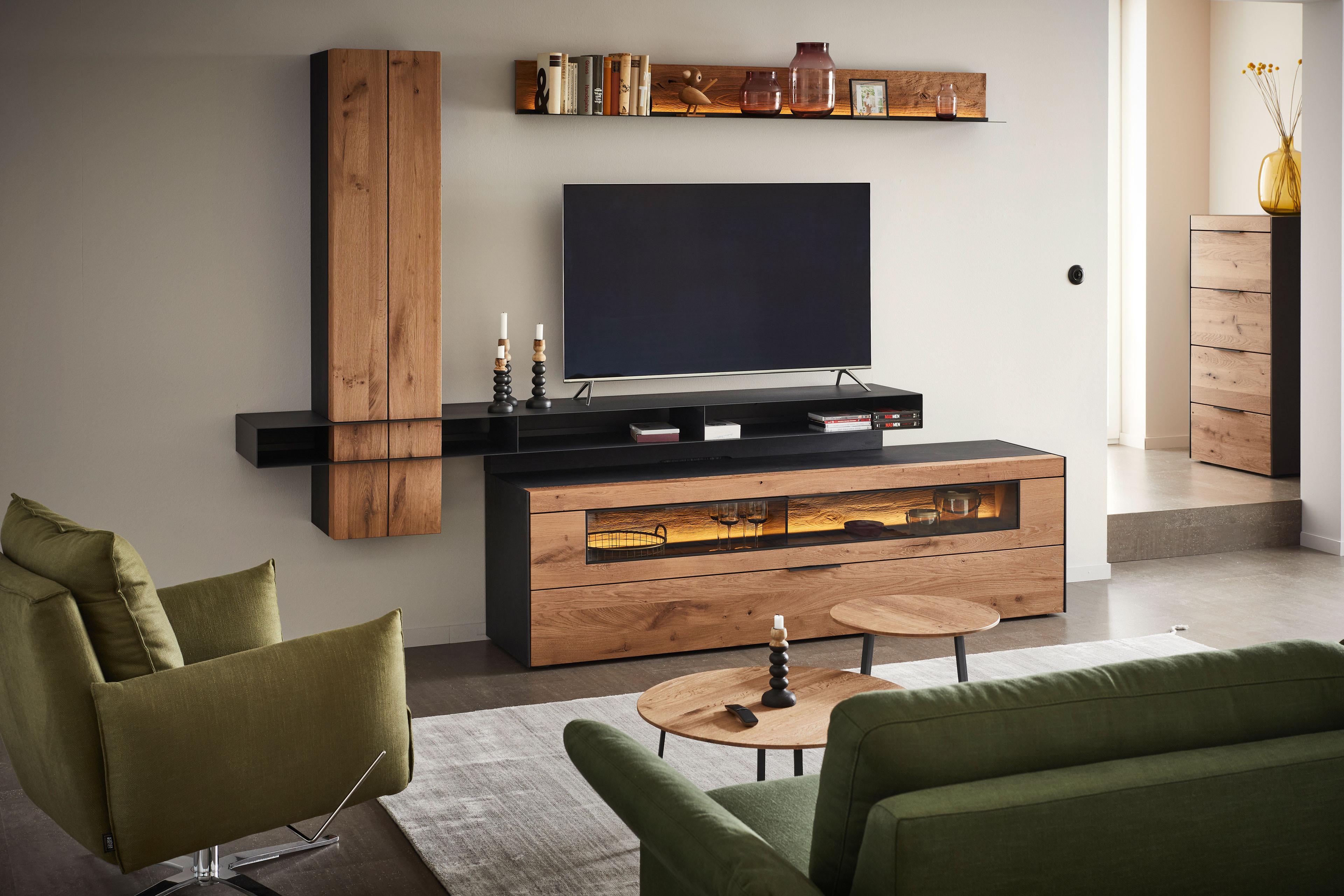 Wohnwand V22 von SCHÖNER WOHNEN - Modell Yoris Kerneiche Umato/ Eiche anthrazit Yoris – das Feinste aus dem Forst kommt zu Ihnen ins Haus.
