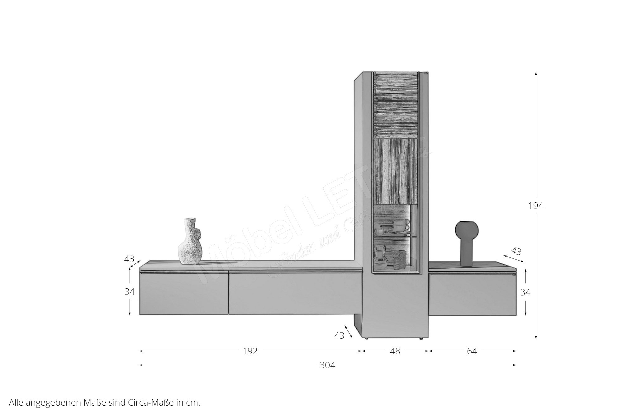 - Angebot ohne Deko, Relief-Rückwand, Beleuchtung & Beimöbel -