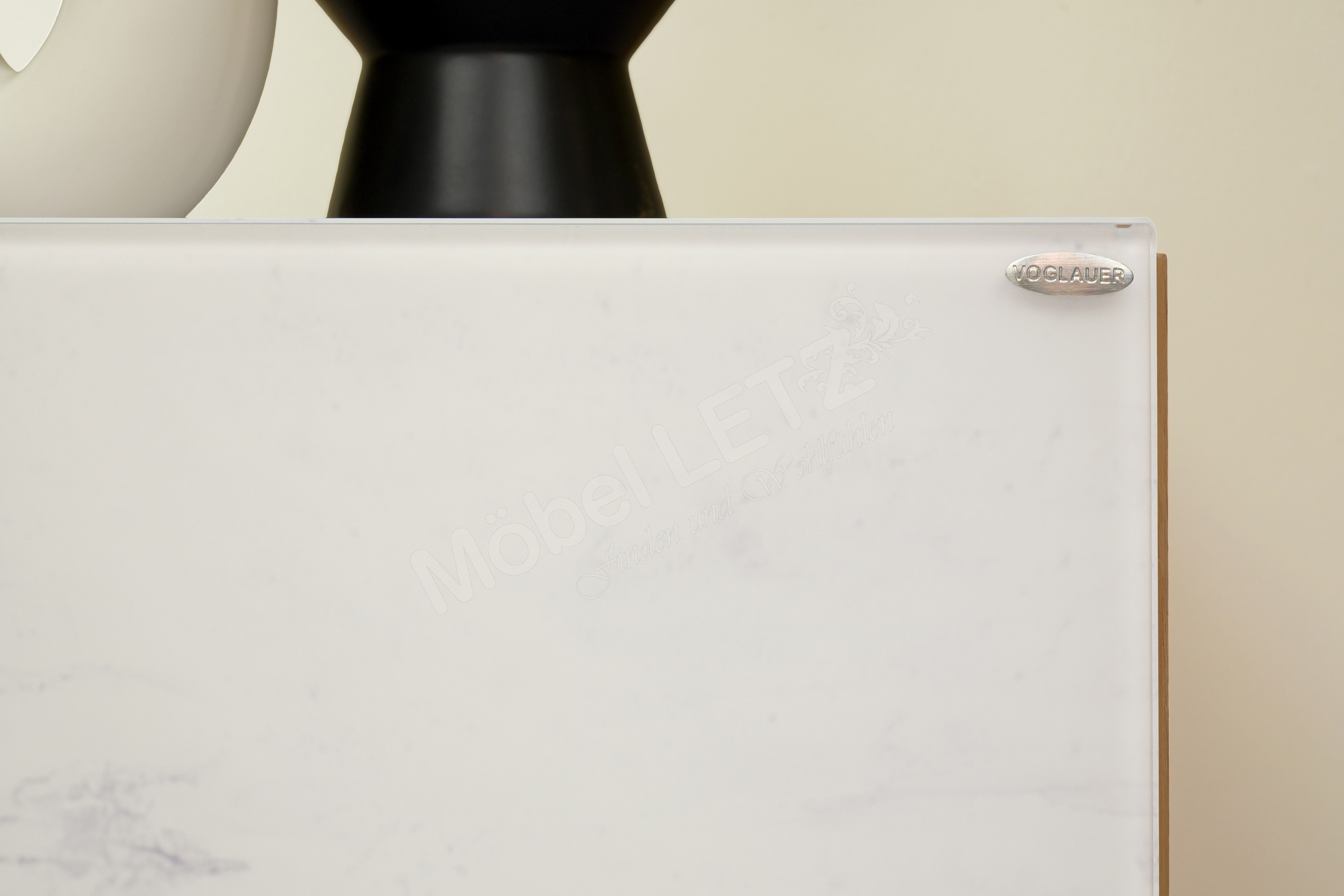 - Glasfront/ Abdeckplatte/ Glasrückwand: Firneis white, satiniert bedruckt