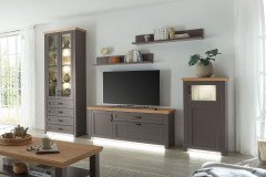 Wohnwand von Wehrsdorfer - Modell Move-living in Lack graphit mit Asteiche Move-living - Landhausflair in Bewegung: natürlich und modern.