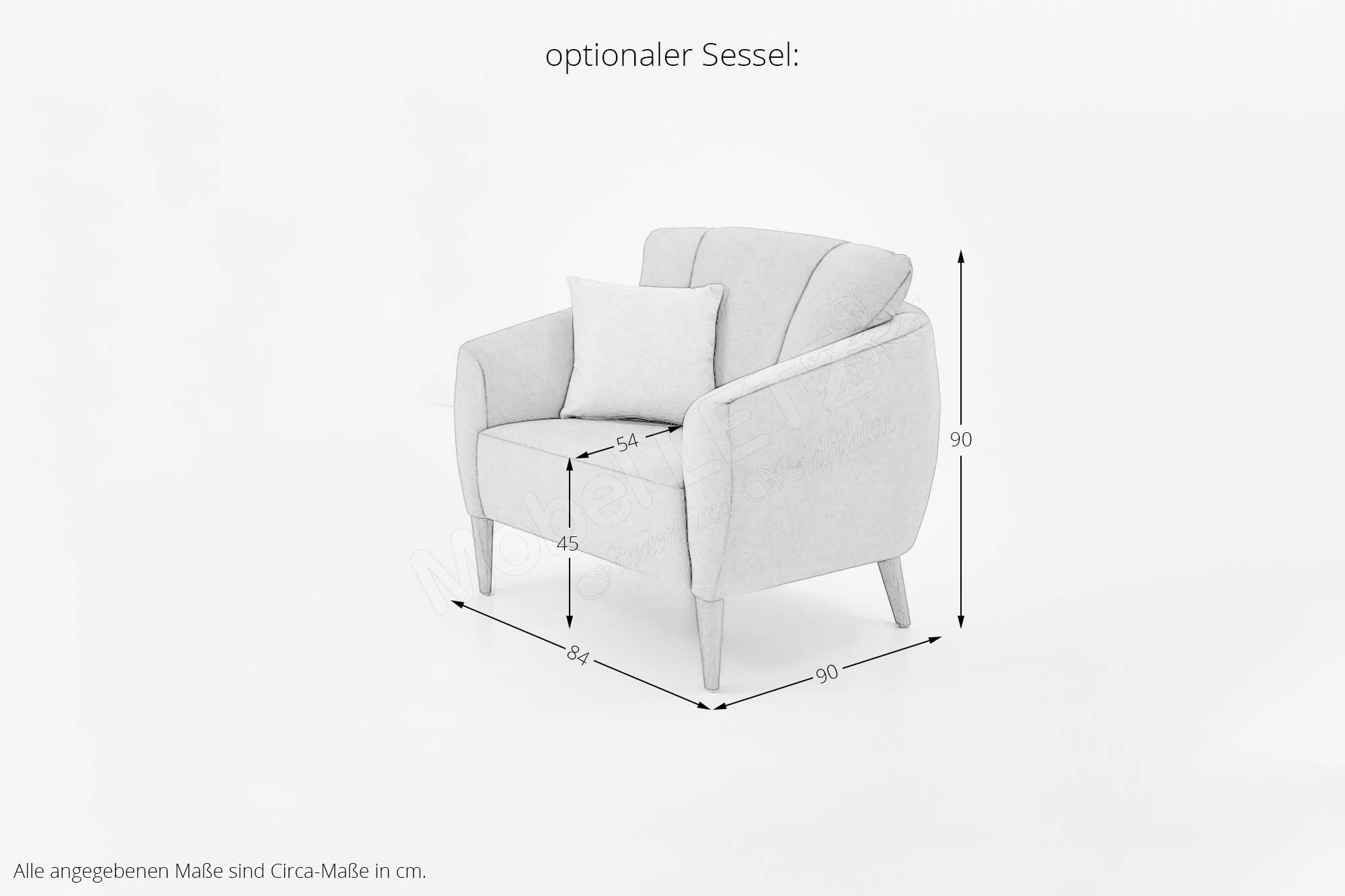 • Alle angegebenen Maße beziehen sich auf die Sitzhöhe ca. 45 cm. Wird eine andere Sitzhöhe gewählt, bitte die Aufmaße beachten.
