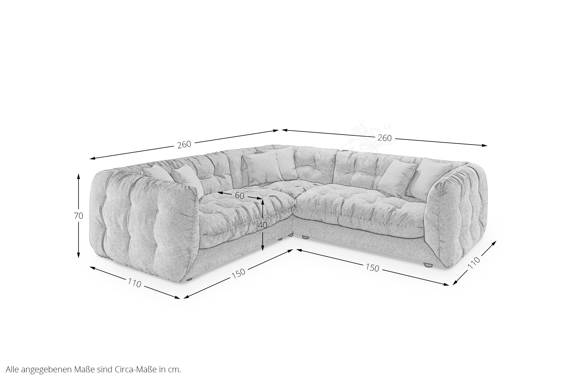 • Durch die unterschiedlichen Beschaffenheiten der Bezugsmaterialien und der verarbeiteten Polsterwatte neigt dieses leger verarbeitete Modell zur Wellenbildung. Unterstützt wird diese Entwicklung dadurch, dass Stoffe sich unter Einfluss von Körperwärme, Körperfeuchtigkeit und Körpergewicht mehr oder minder dehnen und dadurch „Wellen“ bilden. Wellen, welche durch die Dehnungseigenschaften der verwendeten Stoffe oder aufgrund großer Polsterflächen entstehen, stellen keinen Sachmangel dar. Es handelt sich um einen natürlichen Vorgang, der als Charaktereigenschaft leger verarbeiteter Modelle zu sehen ist. Die Arm- und Kopfpolsterlehnen sind nicht zum Sitzen geeignet. Die maximale Belastbarkeit beträgt 10 kg.